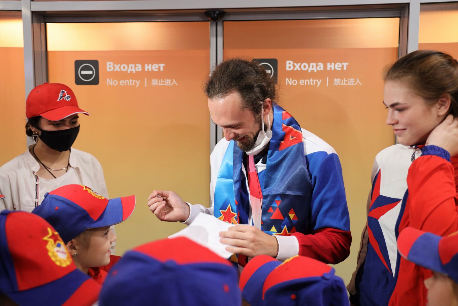 Рейс с российскими спортсменами совершил посадку в аэропорту Шереметьево в 13:53 мск, но из-за досмотра оружия команда вышла к собравшимся болельщикам только в 16:39 мск.