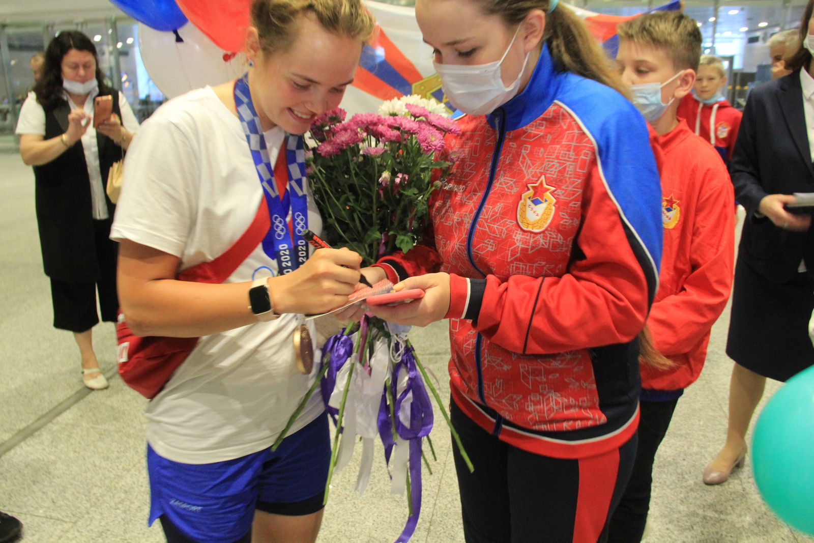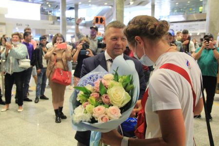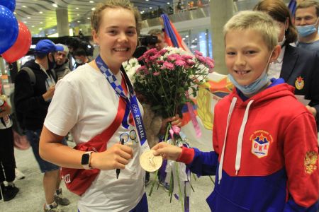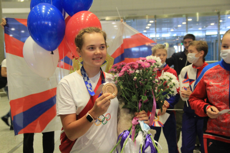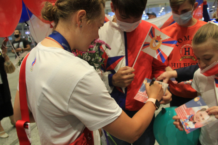 Армейскую спортсменку встречали начальник санкт-петербургского филиала ЦСКА Андрей Харин, председатель комитета по спорту Санкт-Петербурга Антон Шантырь, а также воспитанники спортивной школы (олимпийского резерва, комплексная) ЦСКА, г. Санкт-Петербург и представители СМИ.