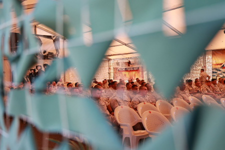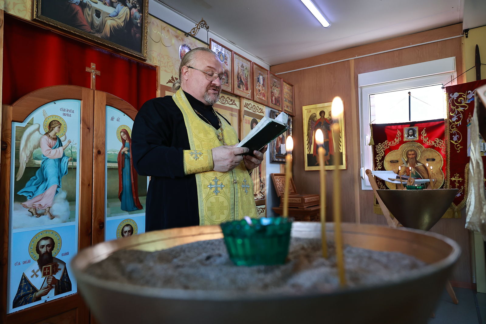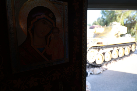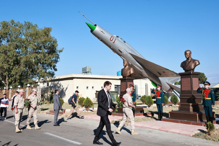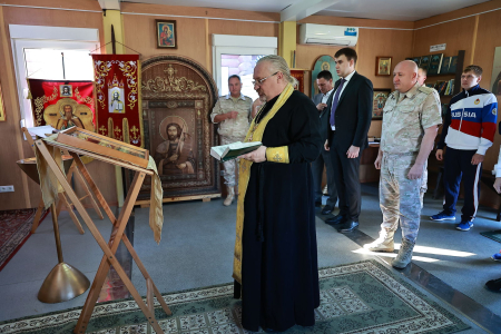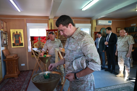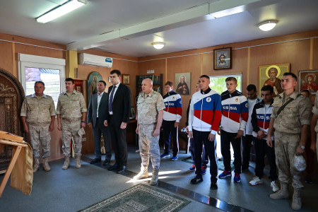 Свой визит делегация начала с молитвы. Вместе с командующим группировкой российских войск в Сирии отслужили молебен в церкви на территории авиабазы.