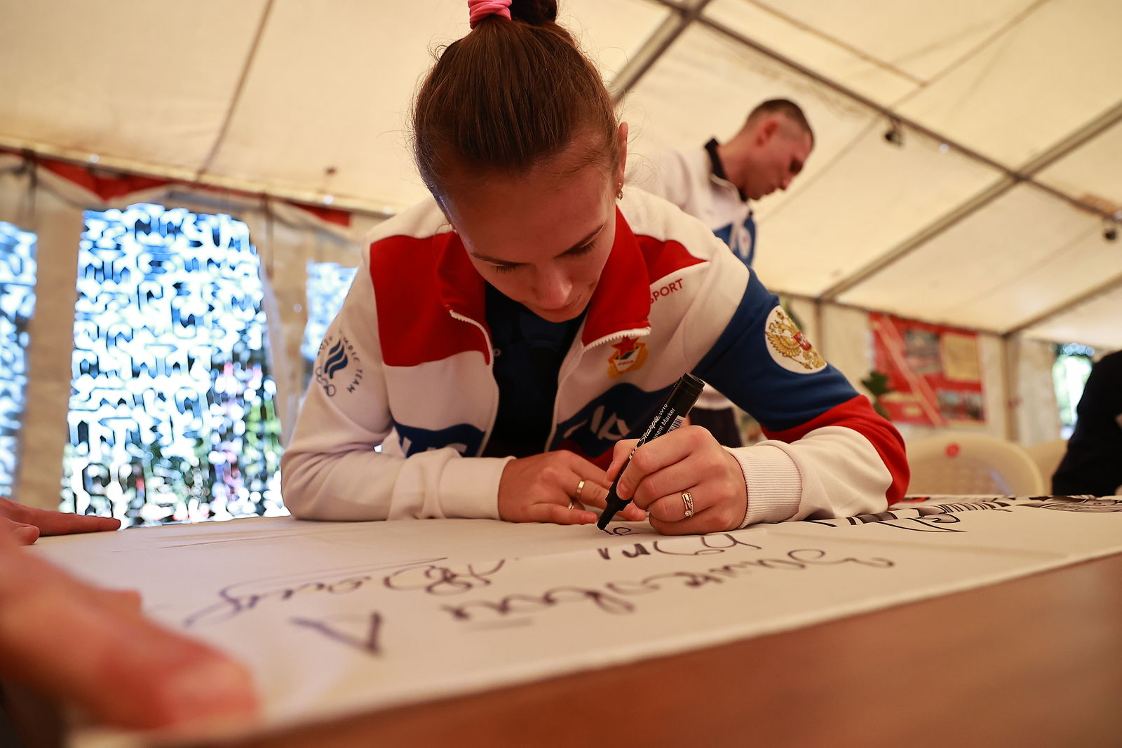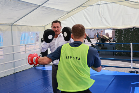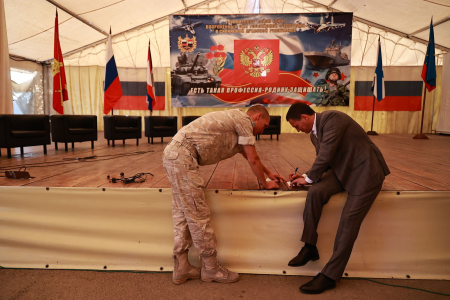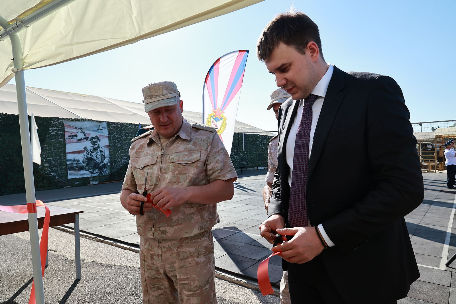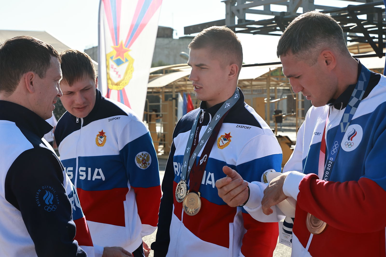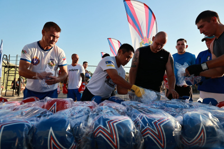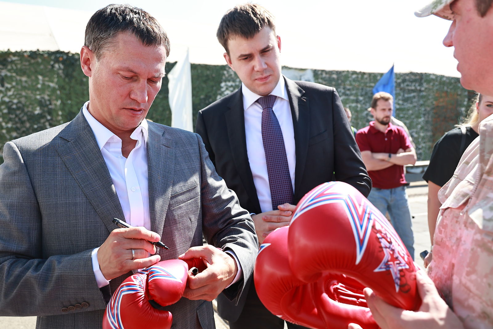 В ответном слове генеральный секретарь ФБР Кирилл Щекутьев поблагодарил военнослужащих за несение службы на передовой, особо отметив, что все же спортивные баталии и их служба не сравнимые вещи. «Буквально чуть меньше двух недель в Москве завершился чемпионат мира среди военнослужащих и перед вами сейчас победители и призеры этих соревнований. Здесь капитан нашей олимпийской команды, ставший обладателем бронзовой награды в Токио, - сказал Щекутьев. – Мы приехали с хорошей, доброй миссией - передаем вам в дар этот мобильный спортивный зал, чтобы в перерыве между службой была возможность заниматься боксом. Мы всегда говорим, что бокс – объединяет. И наше мероприятие это в очередной раз доказывает. Спасибо вам за теплый прием».