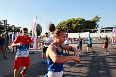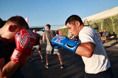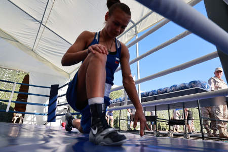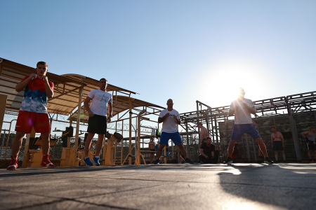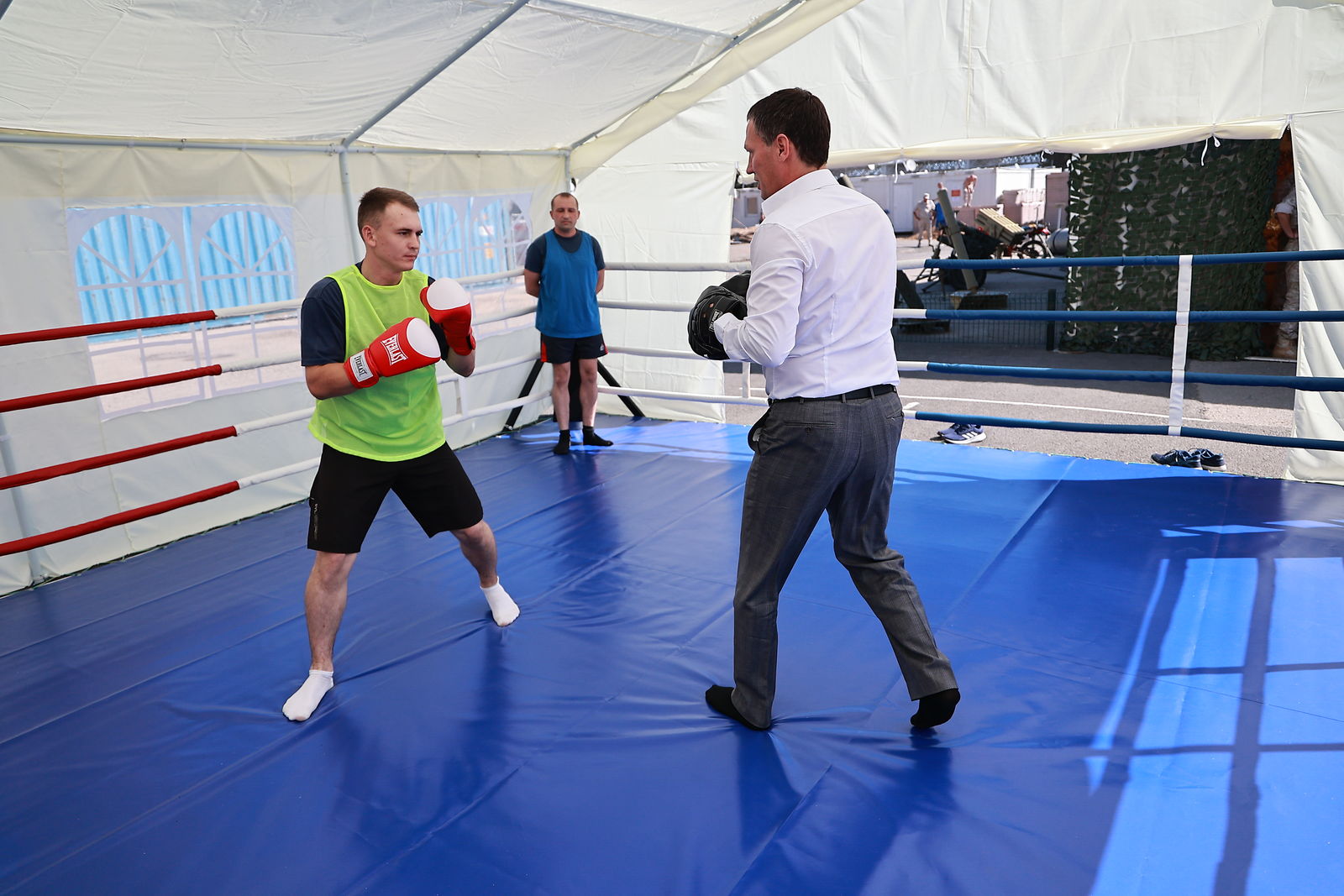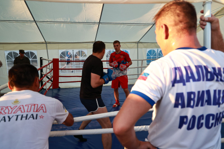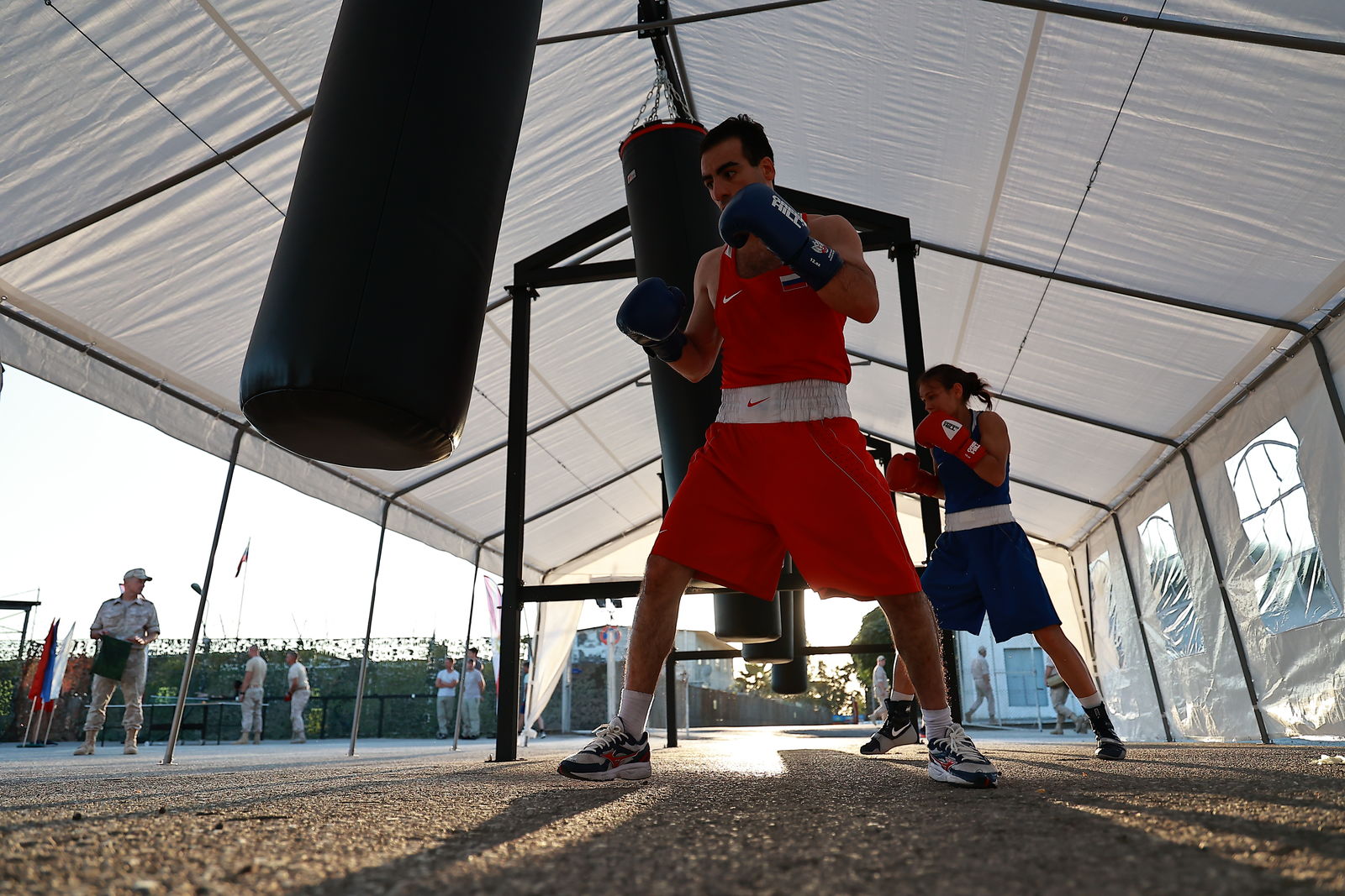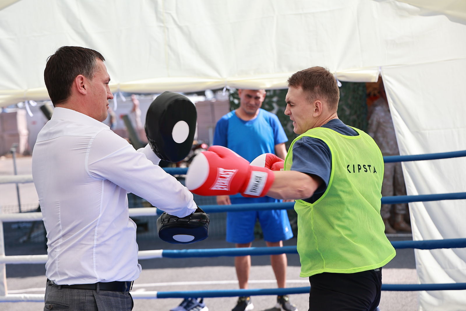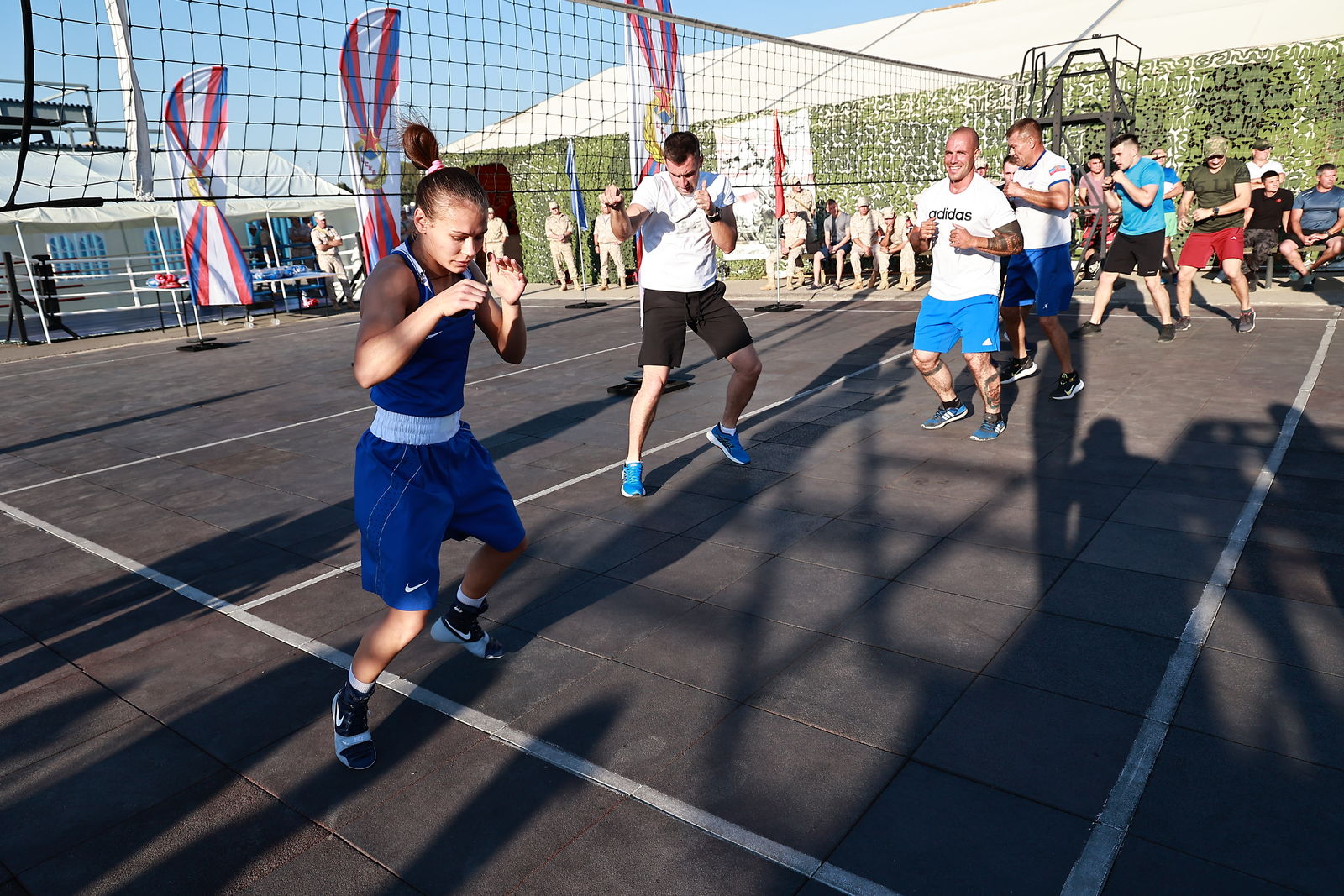 Во второй половине дня, как только немного спала сильная жара, личный состав во главе с армейскими боксерами провели полноценную тренировку. Спортсмены показали военнослужащим важные и необходимые упражнения для разминки, уделив особое внимание растяжке и разогреву всех групп мышц. Затем перешли уже к работе в парах и даже небольшим спаррингам.