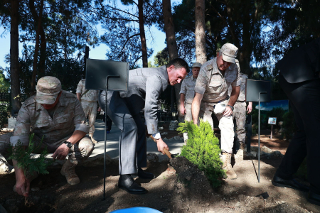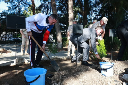 По доброй традиции армейские спортсмены и представители Федерации бокса России на территории авиабазы посадили деревья с именными табличками.