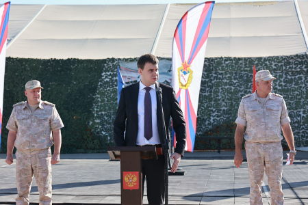 Во время торжественной церемонии открытия мобильного спортивного зала с инвентарем для занятия боксом командующий группировкой российских войск в Сирии генерал-лейтенант Роман Бердников отметил важность данного мероприятия.
