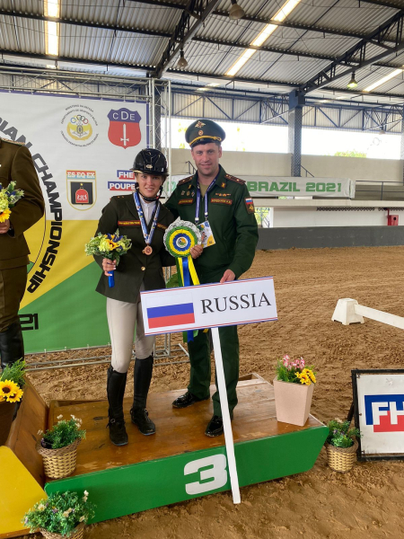 Победительница VII Всемирных военных игр, многократная победительница этапов Кубка мира и различных международных соревнований по конному спорту, многократная победительница чемпионатов и Кубков России прапорщик ВС РФ Анастасия Щербакова была единственной представительницей сборной Вооруженных ил РФ на турнире. По итогам трех дней соревнований в личном зачете армейская спортсменка преодолела три маршрута на трех разных лошадях и стала обладательницей бронзовой награды.