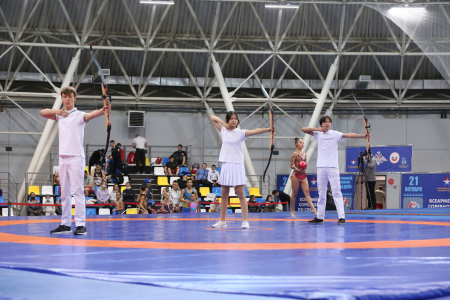 После открытия и парада команд для участников и почетных гостей воспитанники спортивной школы г. Кызыл ЦСКА/Самара провели показательные выступления. В номере были задействованы юные спортсмены всех пяти отделений спортивной школы – художественной гимнастики, бокса, дзюдо, спортивной (вольная) борьбы, стрельбы из лука.