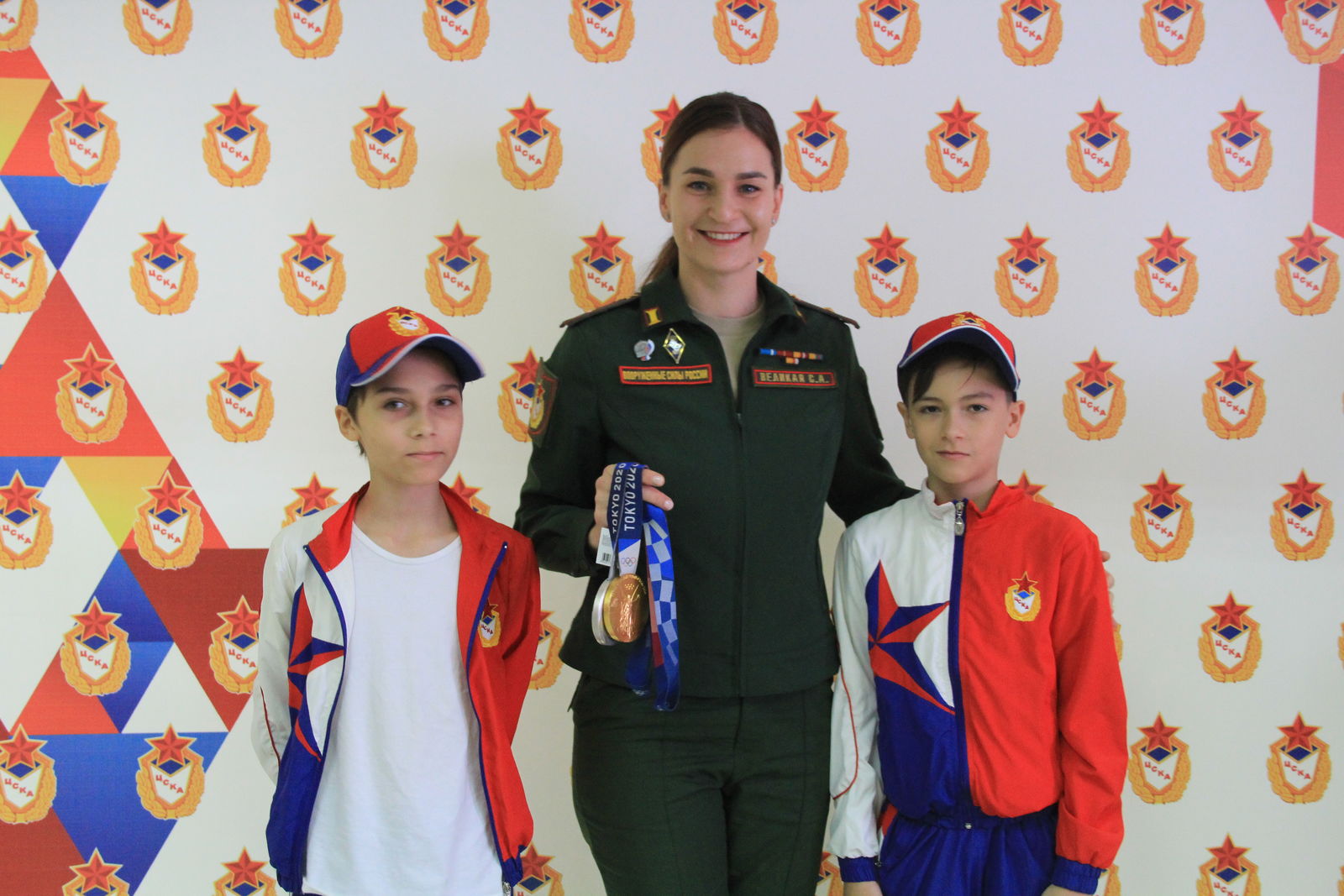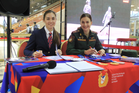 После общения с титулованными спортсменами участники выдвинулись к стенду «Запиши ребенка в школу» все зарядились олимпийской энергией и начали активно записываться в спортивные школы Центрального спортивного клуба Армии.
