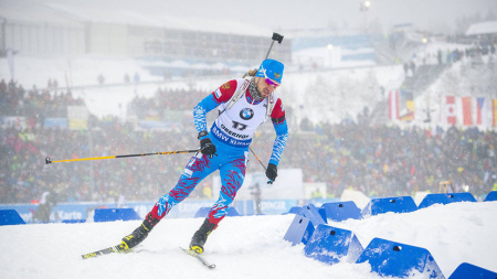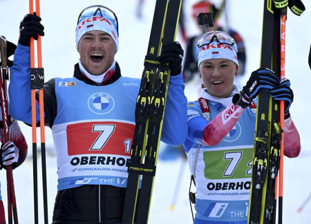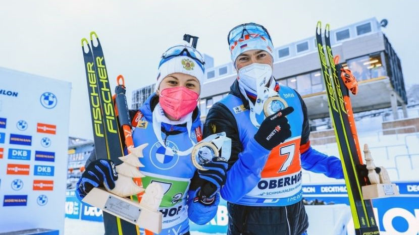 Российский дуэт преодолел дистанцию за 41 минуту 37,1 секунды с 12 дополнительными патронами и одним штрафным кругом.