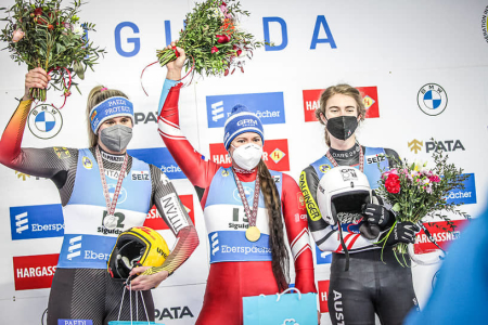 Ранее на этом же этапе Кубка мира Татьяна Иванова завоевала бронзовую награду в соревнованиях среди женщин. По сумме двух попыток саночница ЦСКА уступила победительнице австрийке Маделяйн Эгле 0,218 секунды. Время спортсменки из Австрии 1 минута 24,192 секунды. Второй стала немка Юлия Таубиц (отставание - 0,180 секунды).