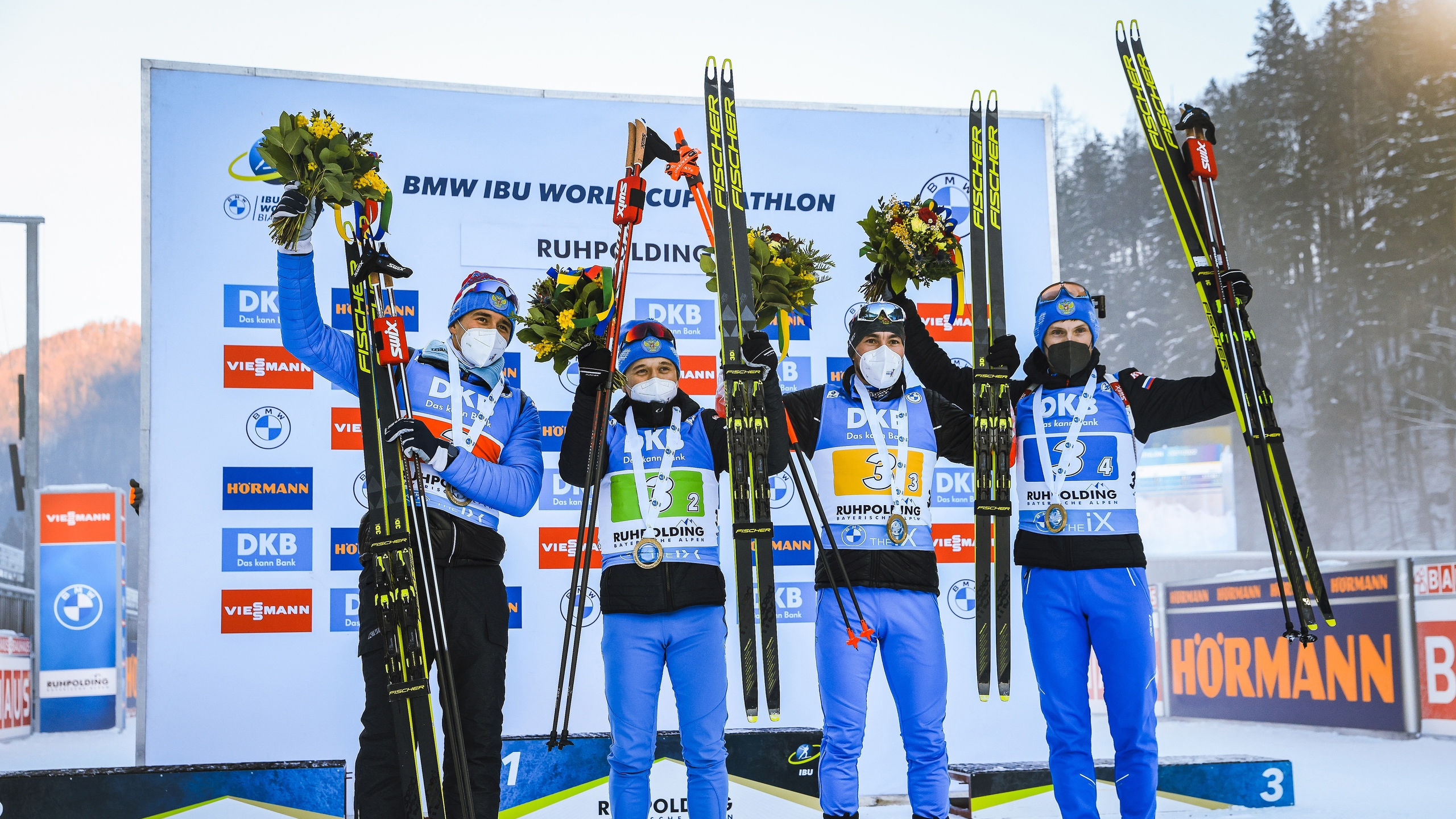 Сразу три армейца в составе эстафетного квартета принесли сборной России золотую награду в мужской эстафетной гонке. Чемпион мира, победитель и призер Всемирных военных игр и чемпионата Европы старший лейтенант Максим Цветков, победитель и призер чемпионатов мира, многократный чемпион Европы, победитель и призер этапов Кубков мира лейтенант Александр Логинов и призер чемпионатов мира и Европы Карим Халили, а также Даниил Серохвостов преодолели дистанцию 4х7,5 километра за один час 11 минут 6,1 секунды, использовав четыре дополнительных патрона.