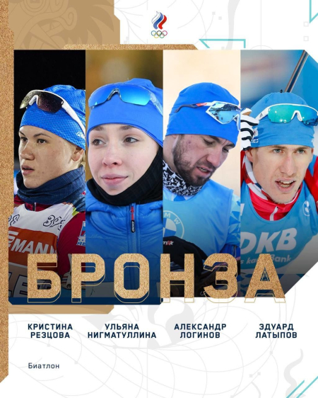 Четверка представителей Центрального спортивного клуба Армии - лейтенант Александр Логинов, прапорщик Эдуард Латыпов, прапорщик Ульяна Нигматуллина и Кристина Резцова стали обладателями бронзовых наград зимних Олимпийских игр 2022 года.