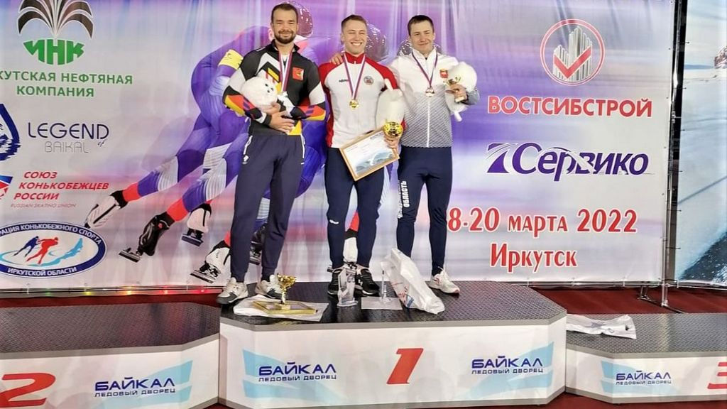 По итогах четырех забегов его сумма - 152,940 балла. Также Алдошкин установил рекорд катка. Вторым стал Александр Подольский (154,268), третьим - Егор Юнин (155,345).