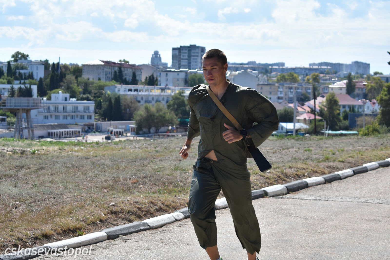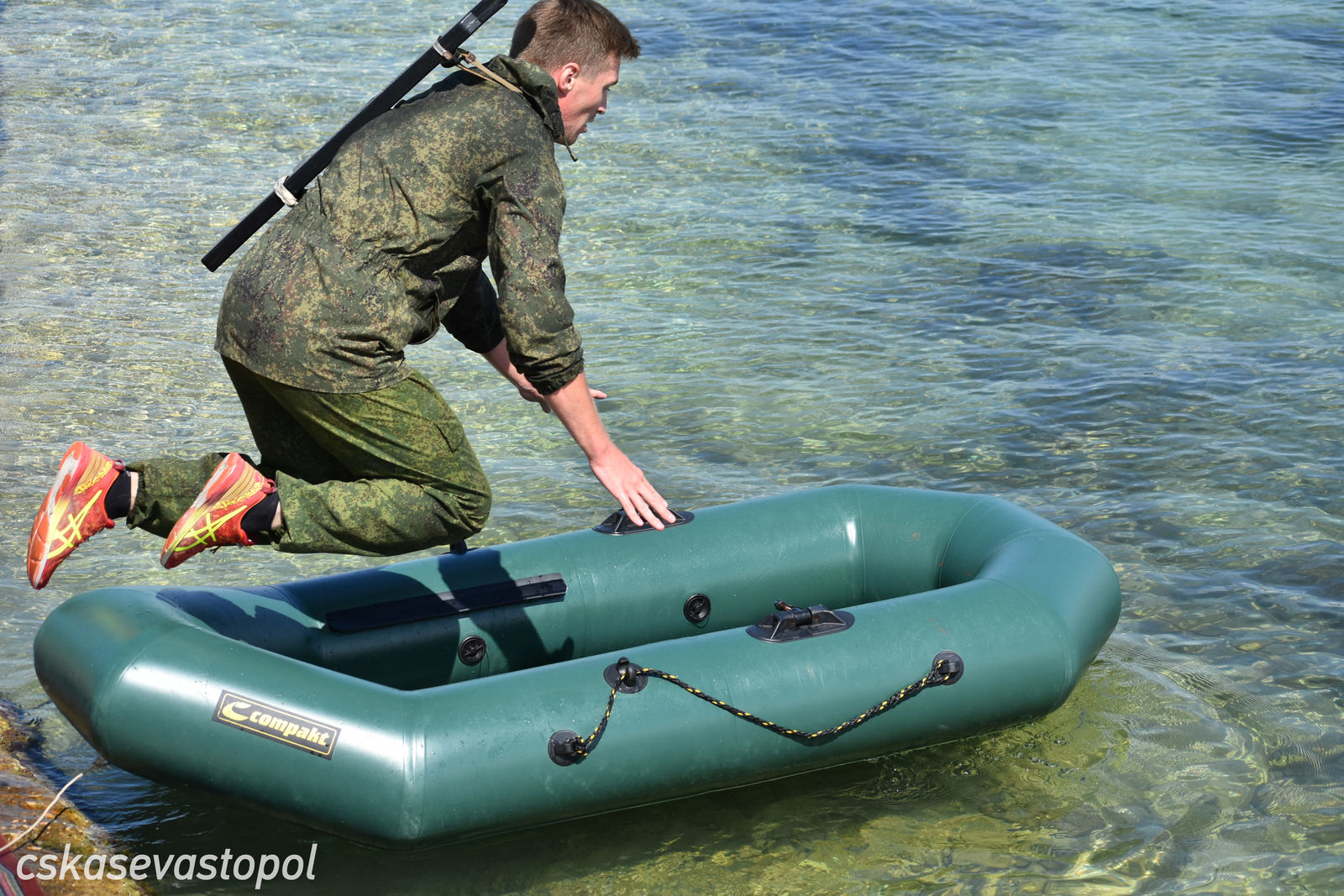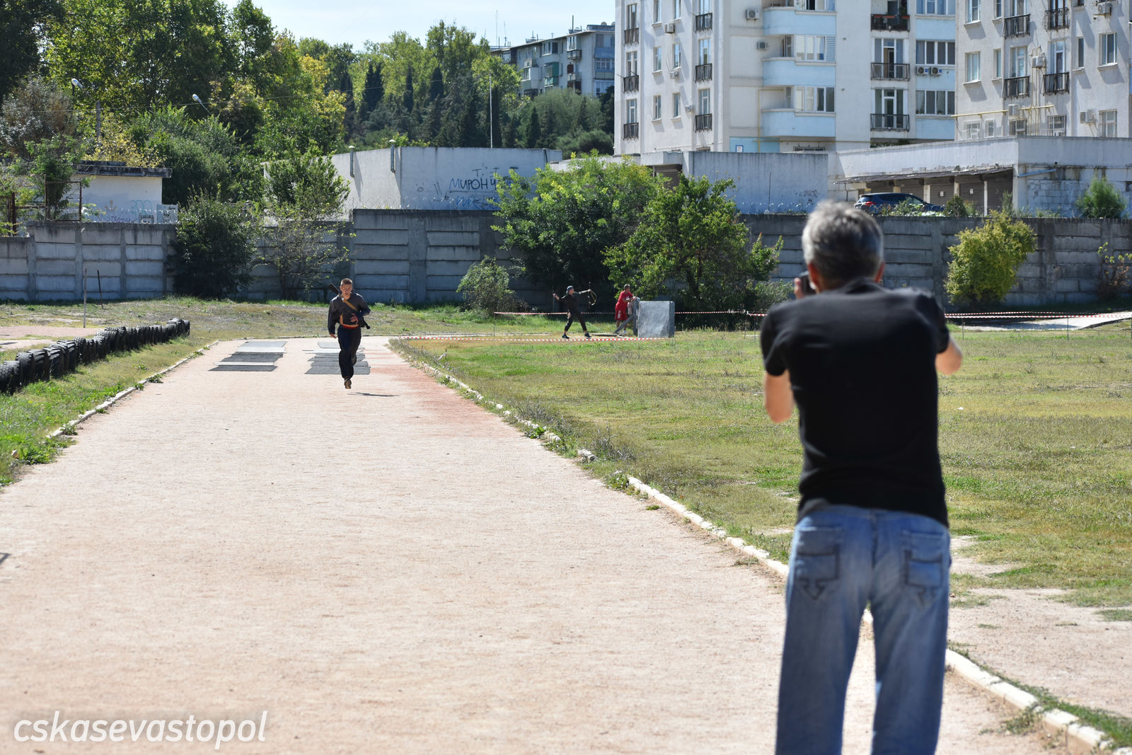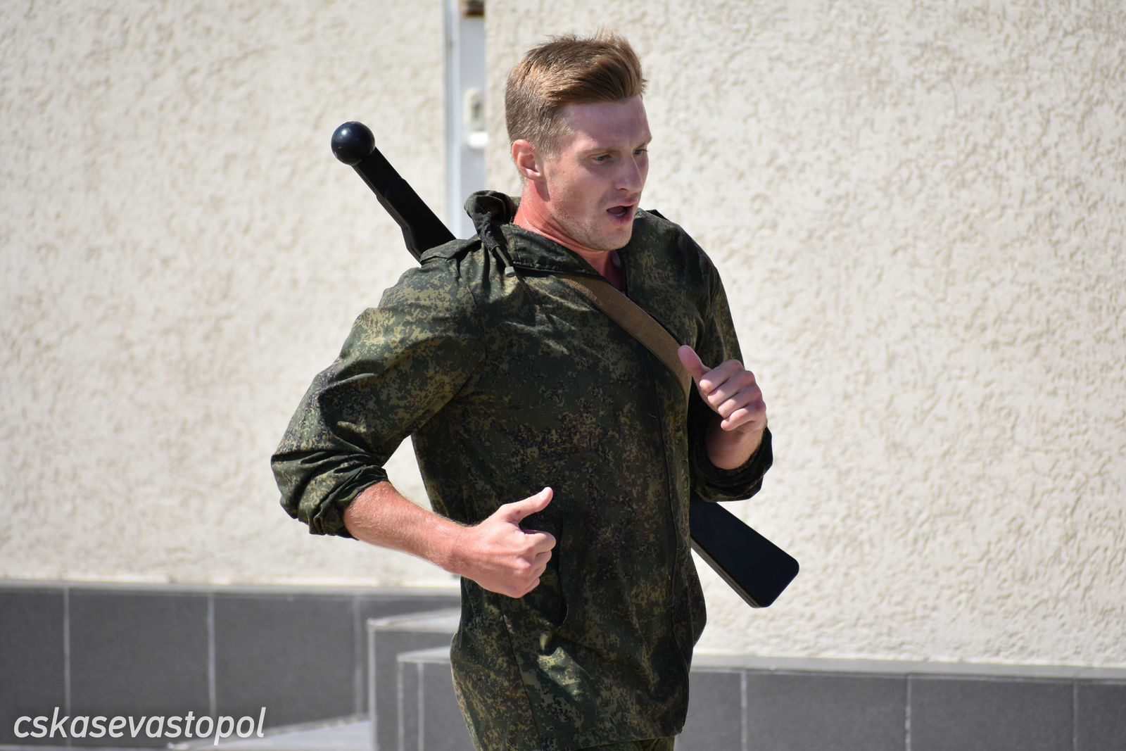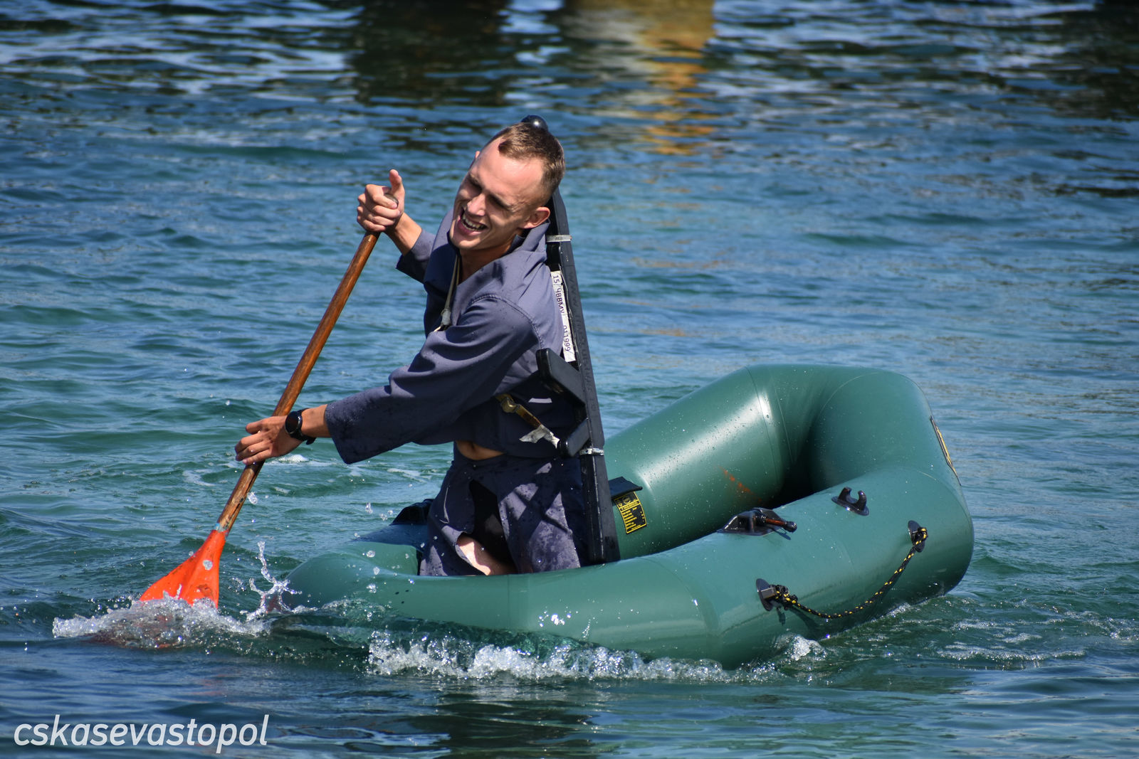 После старта военнослужащие и курсанты бежали в тир. Задача – стрелять из малокалиберной винтовки и с 50 метров попасть по 5 мишеням диаметром 100 мм. Следующий пункт – водная станция. На надувных лодках с одним веслом они должны были пройти 50 метров до буйка и обратно. Последнее упражнение – метание гранаты. Всю дистанцию мужчины преодолевали в робе с макетом автомата на спине, девушки – в спортивных костюмах без автомата.