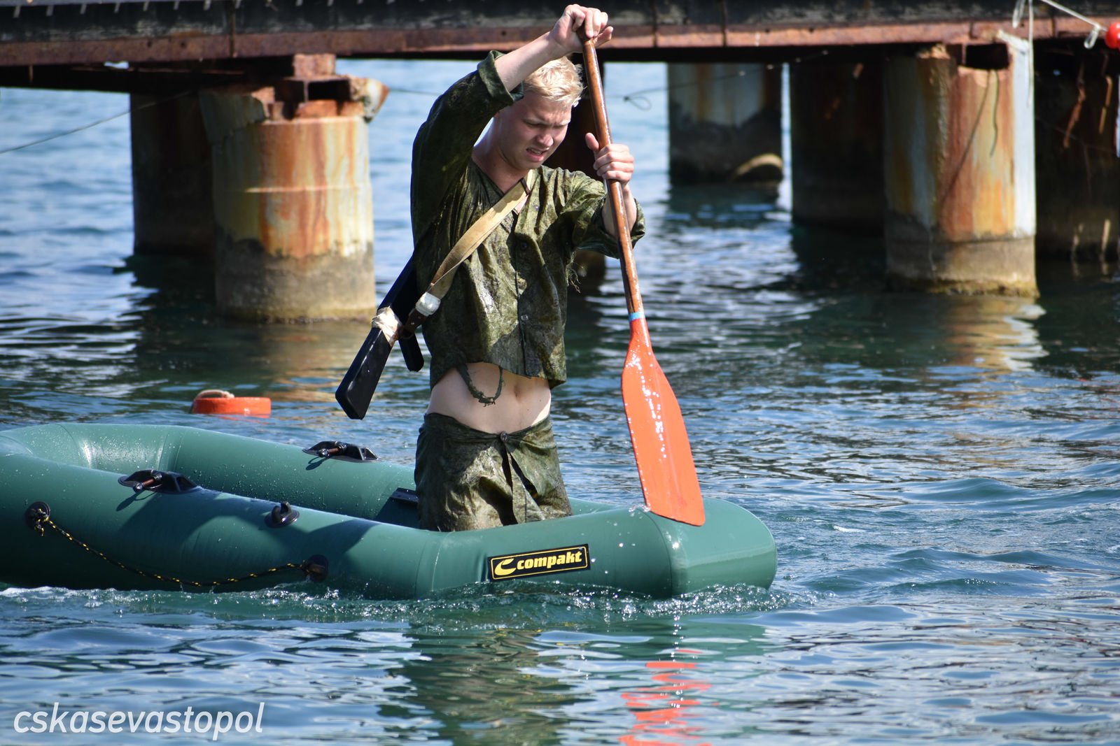 В последний соревновательный день погода вновь проверяла участников на прочность. Под палящим солнцем спортсменам предстоял марш-бросок на 2500 метров с препятствиями на земле и на воде.