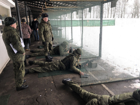 Личный состав нового пополнения двух спортивных рот ЦСКА выполнили 1 упражнение начальных стрельб из АК-74М. Всего в занятии приняли участие 86 человек.