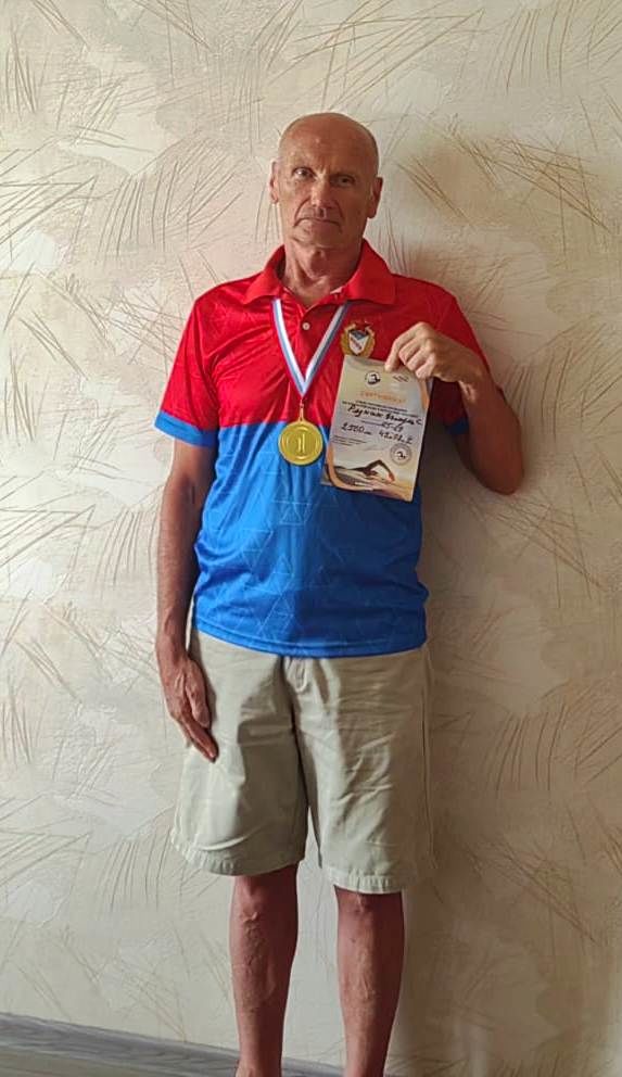 В возрастной категории 65 – 69 лет он проплыл 2 500 м за 42 минуты 08 секунды и занял 1 место.