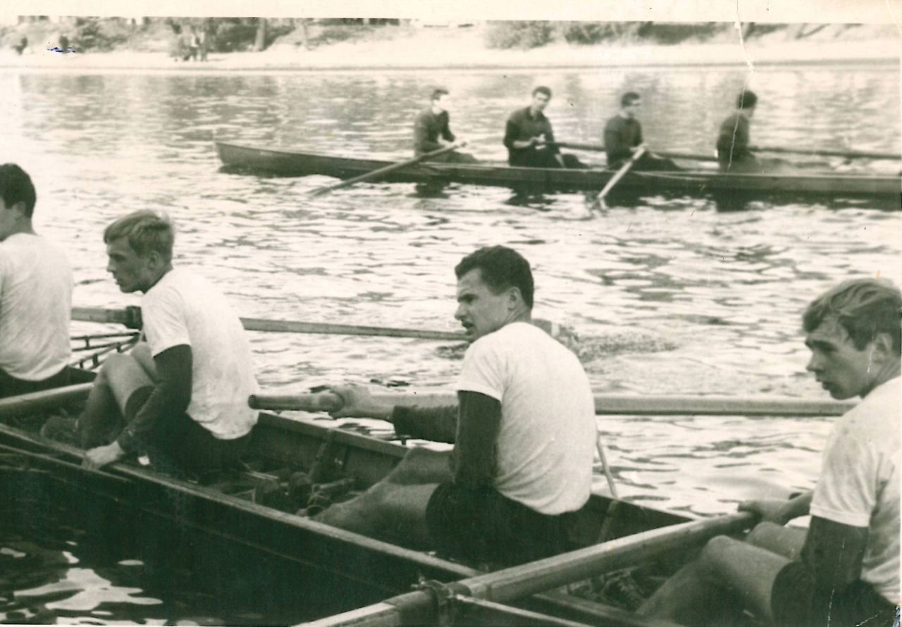 Мысль податься в греблю не оставляла, но время шло, а компаньонов из техникумовских однокашников не находилось. 1964 год, Олимпиада в Токио, в «Спортивной неделе Ленинграда» интервью с олимпийским чемпионом Олегом Тюриным – воспитанником ленинградской гребли, офицером ВМФ. Всплыли киевские воспоминания и 25 октября 1964 года я вошел в ворота гребного клуба «Энергия» и взял в руки настоящее, пусть совсем не новое спортивное весло. Вся спортивная карьера – это «Энергия» и Спортивный клуб Армии. «Энергия сделала из меня мастера спорта, СКА- мастера международника.