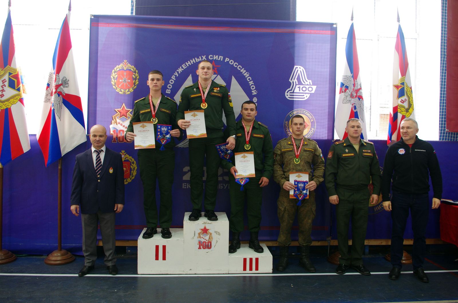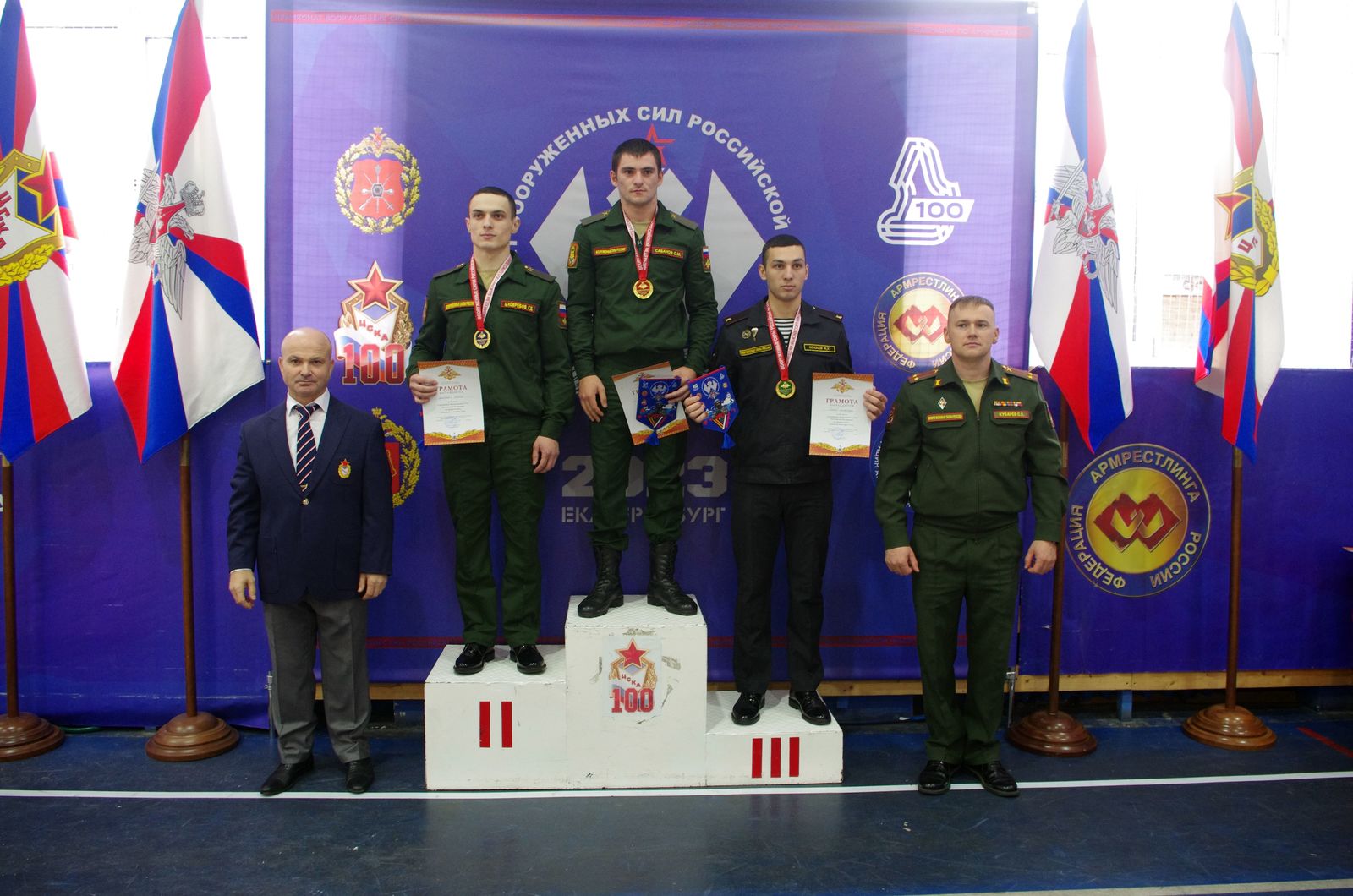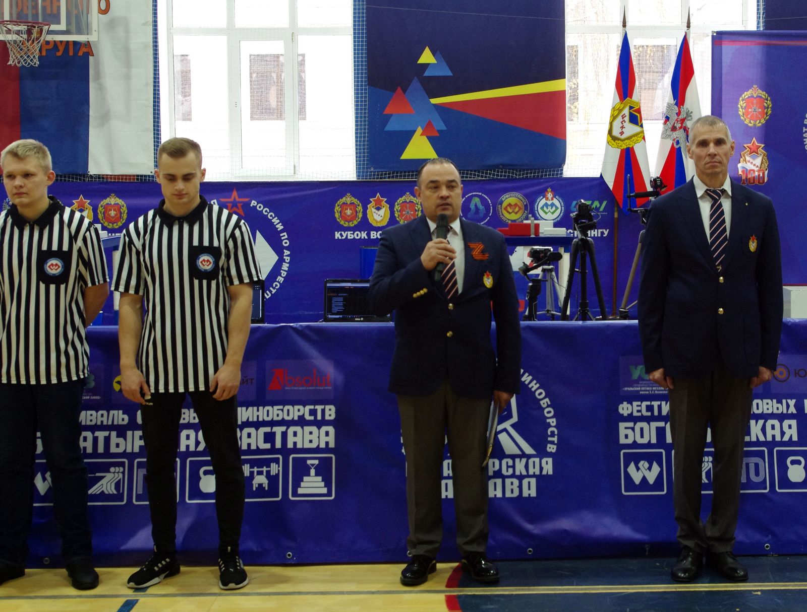 С приветственным словом к участниками соревнований обратились: президент федерации Урала по армрестлингу, вице-президент Российской федерации армрестлинга Юрий Жилинский, начальник спортивного центра (г. Екатеринбург) самарского филиала ЦСКА Рифат Кабиров, старший офицер отделения физической подготовки Центрального военного округа подполковник Сергей Кубарев, главный судья соревнований, заслуженный тренер России, мастер спорта СССР по вольной борьбе, мастер спорта России по армрестлингу Артур Агаджанян.