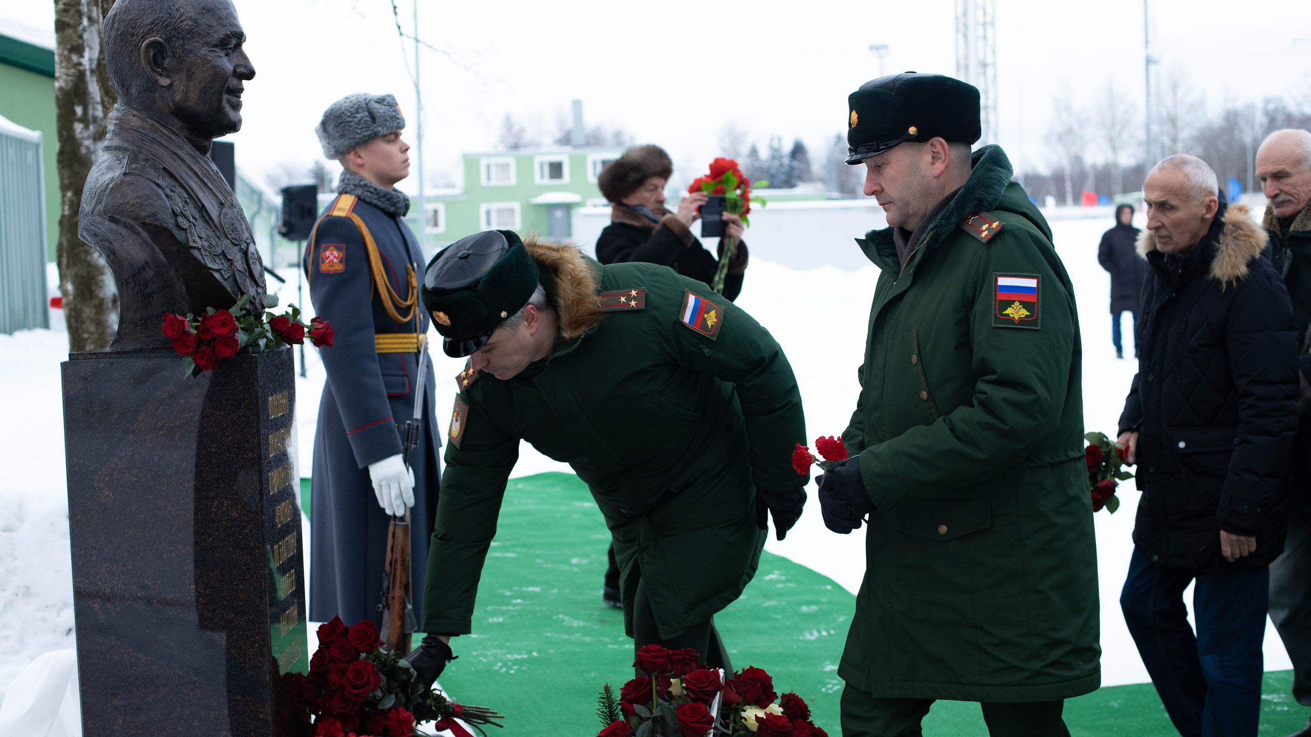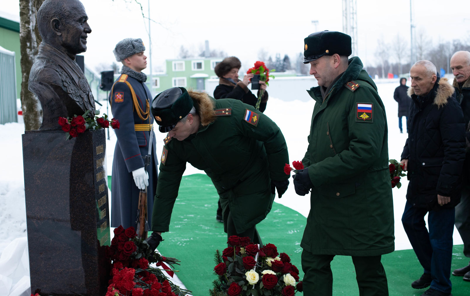 По завершению торжественной церемонии, в знак уважения и памяти двукратного олимпийского чемпиона рота почётного караула и гости мероприятия возложили цветы.