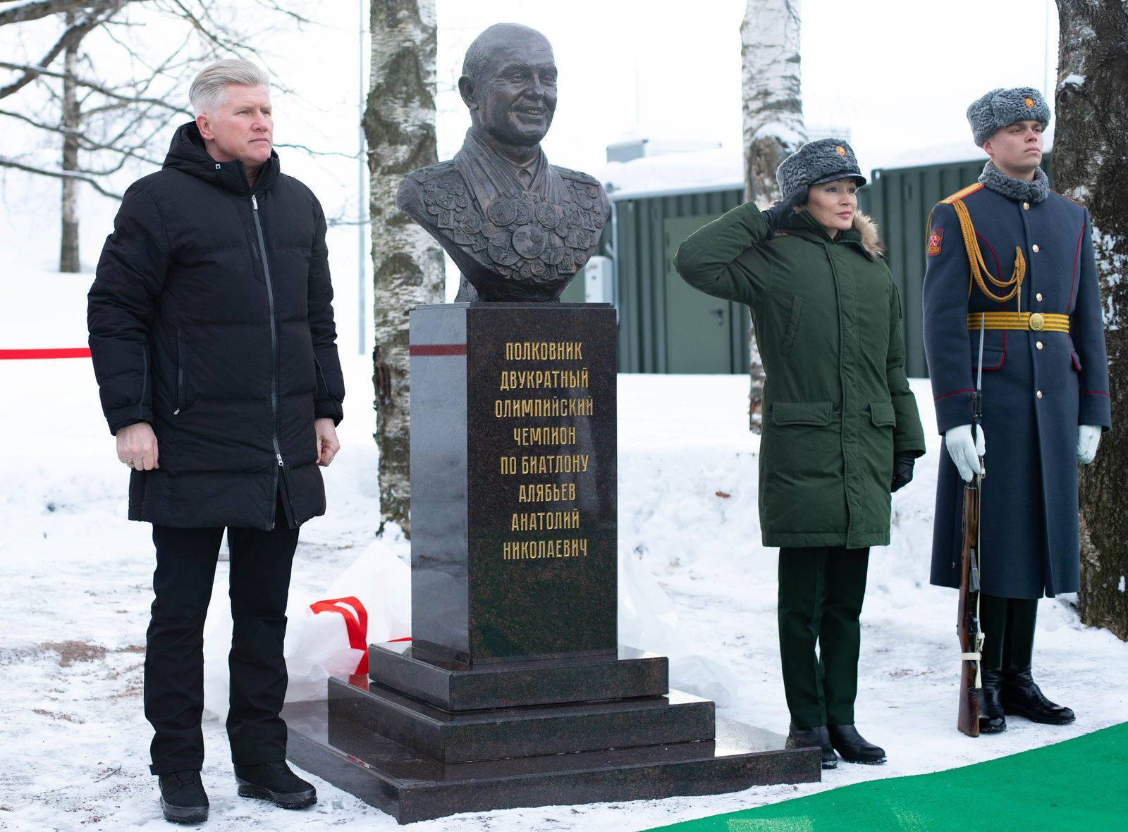 Право открыть бюст Анатолия Алябьева предоставили двукратной олимпийской чемпионке по биатлону, заслуженному мастеру спорта, полковнику Светлане Ишмуратовой и двукратному олимпийскому чемпиону по биатлону, заслуженному мастеру спорта Дмитрию Васильеву. Открытие бюста дало старт соревнованиям по лыжным гонкам на Первенство Военного института физической культуры среди переменного состава, которые пройдут на биатлонном стадионе им. полковника Алябьева.