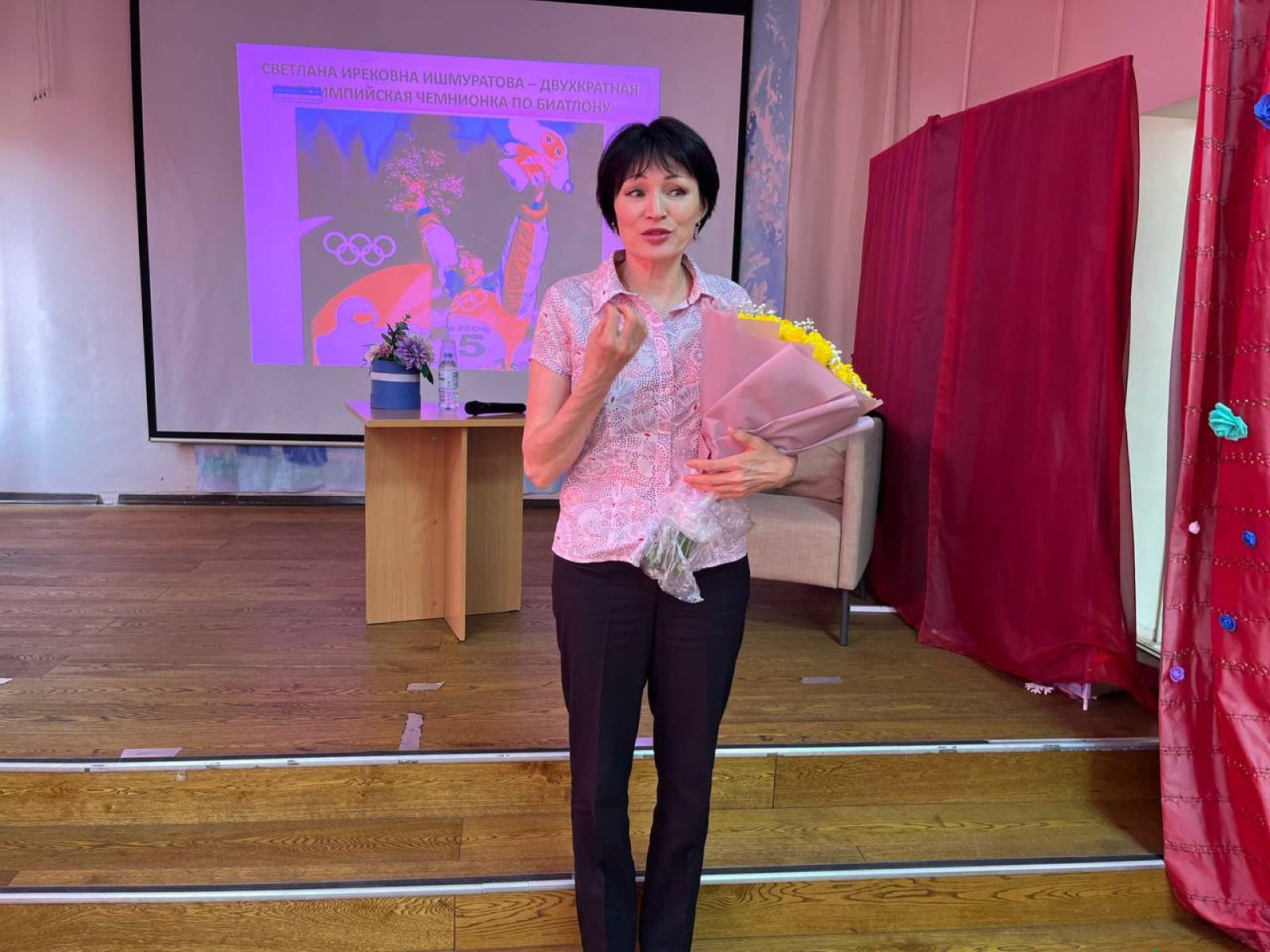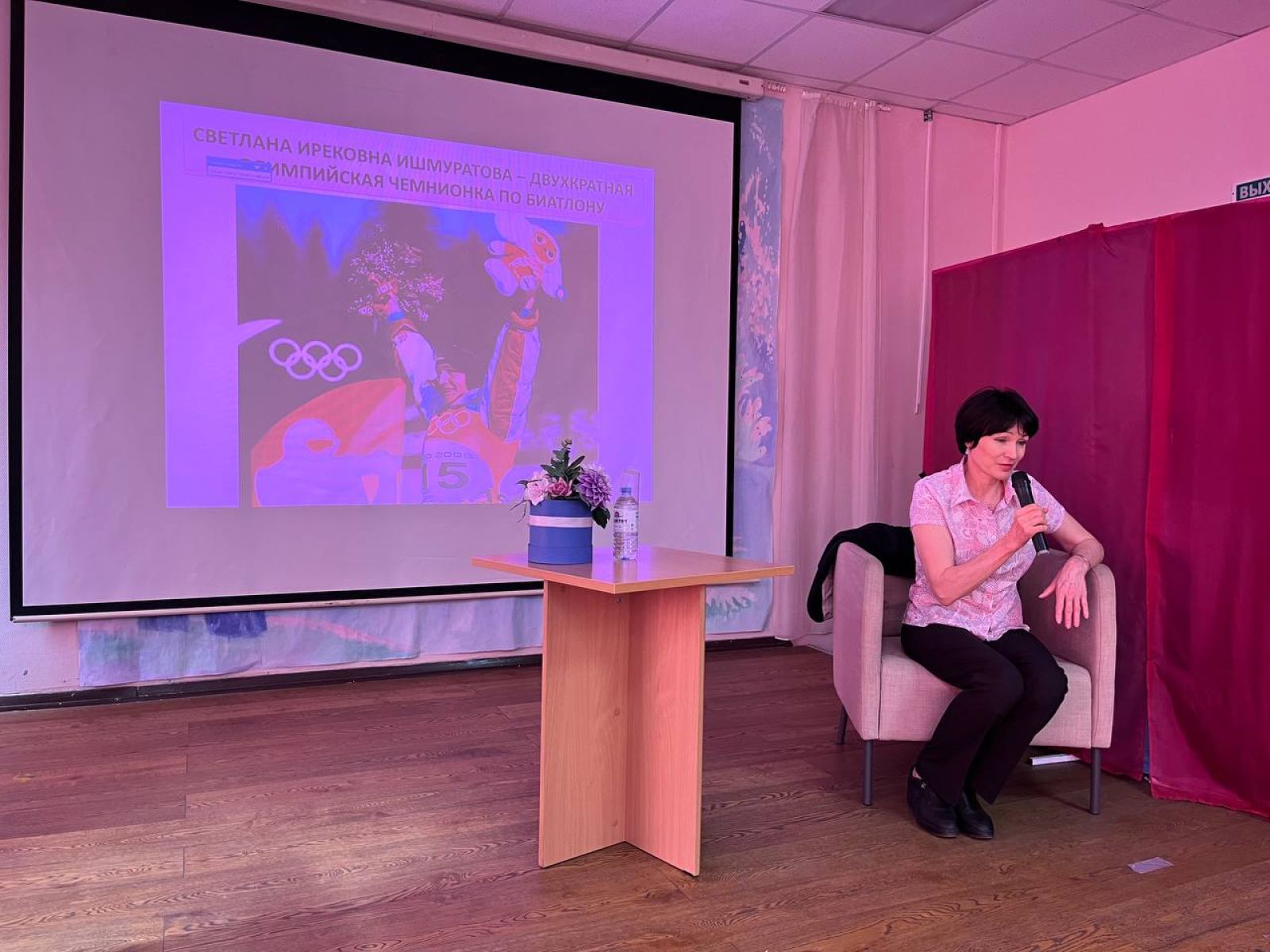 Светлана Ирековна рассказала о своем пути к олимпийскому пьедесталу, поделилась интересными историями из спортивной карьеры и личной жизни и ответила на вопросы ребят.