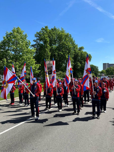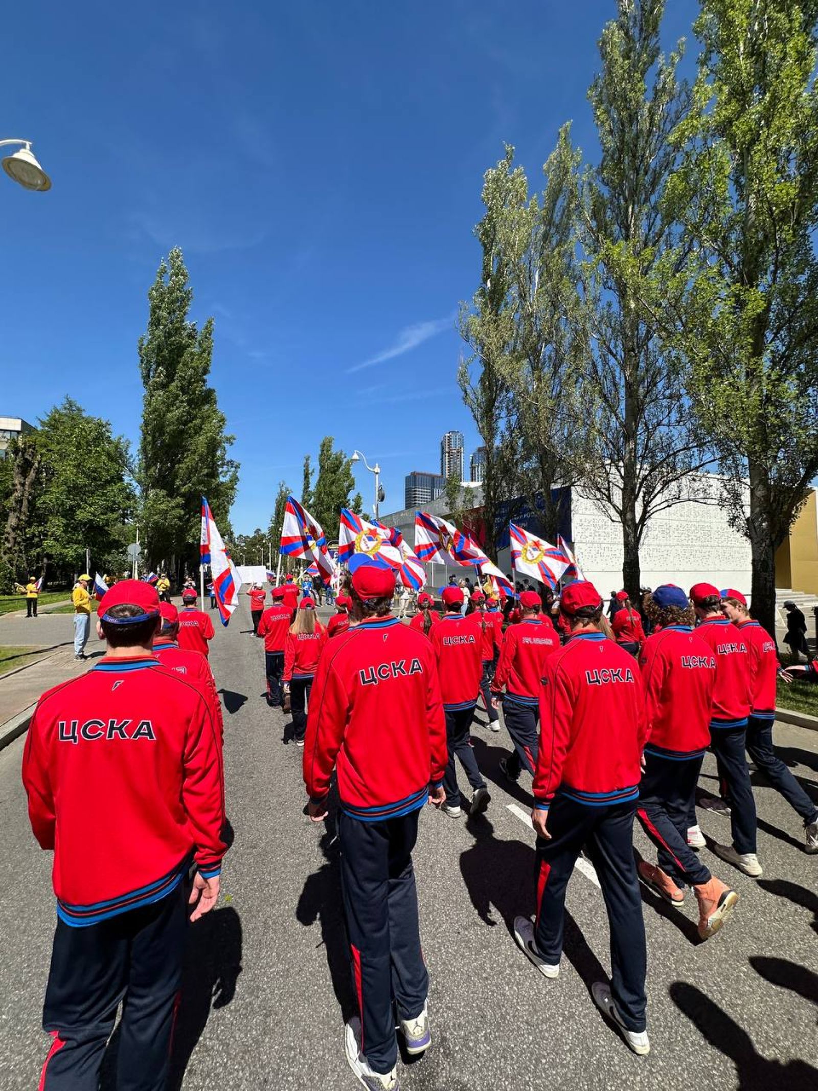 Во главе шествия были заслуженный мастер спорта, заслуженный тренер, олимпийский чемпион, чемпион мира и Европы, армеец Александр Лебзяк, советский боксер, олимпийский чемпион трехкратный чемпион Европы, мастер спорта СССР по боксу, армеец Олег Григорьев. А колонну ЦСКА возглавил олимпийский чемпион по фехтованию Алексей Черимисинов