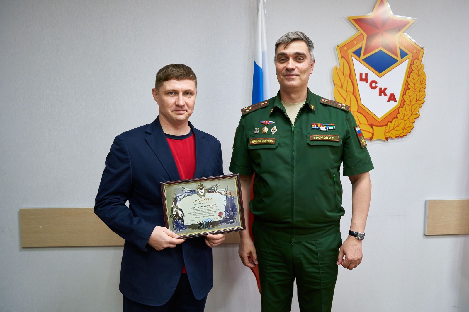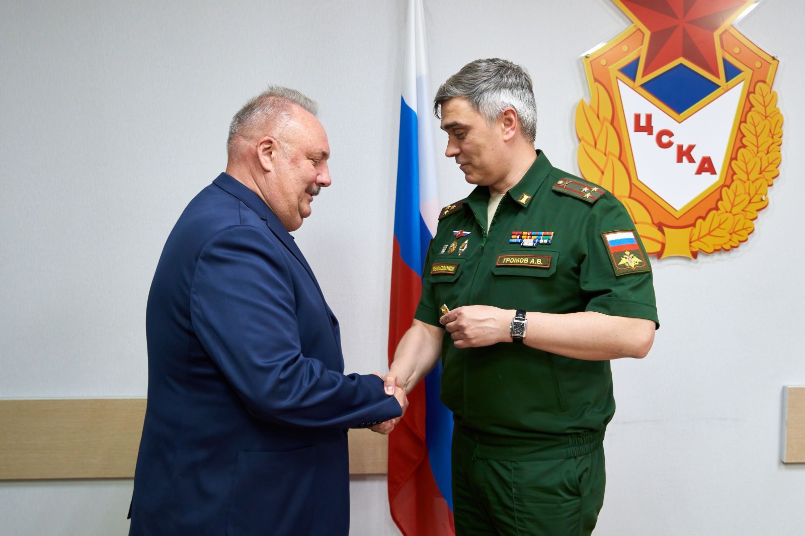 Большая делегация прошла по спортивным объектам, где начальник ЦСКА Артём Громов вручил ведомственные и трудовые награды за добросовестный труд, заслуги, помощь бойцам и активную включенность в трудовую жизнь клуба.