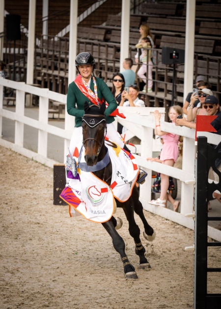 В результате напряженной борьбы на основном маршруте Гран-при 150см Анастасия Щербакова поднялась на вершину пьедестала; спортсменка выступала в паре с Фаворит Бэк Ноергард и набрала 4 штрафных очка за 85,81 сек. Долгое время лучшим результатом были 8 штрафных очков, Анастасия выступала последней, поэтому её цель была проехать не с лучшим временем, а чище остальных.