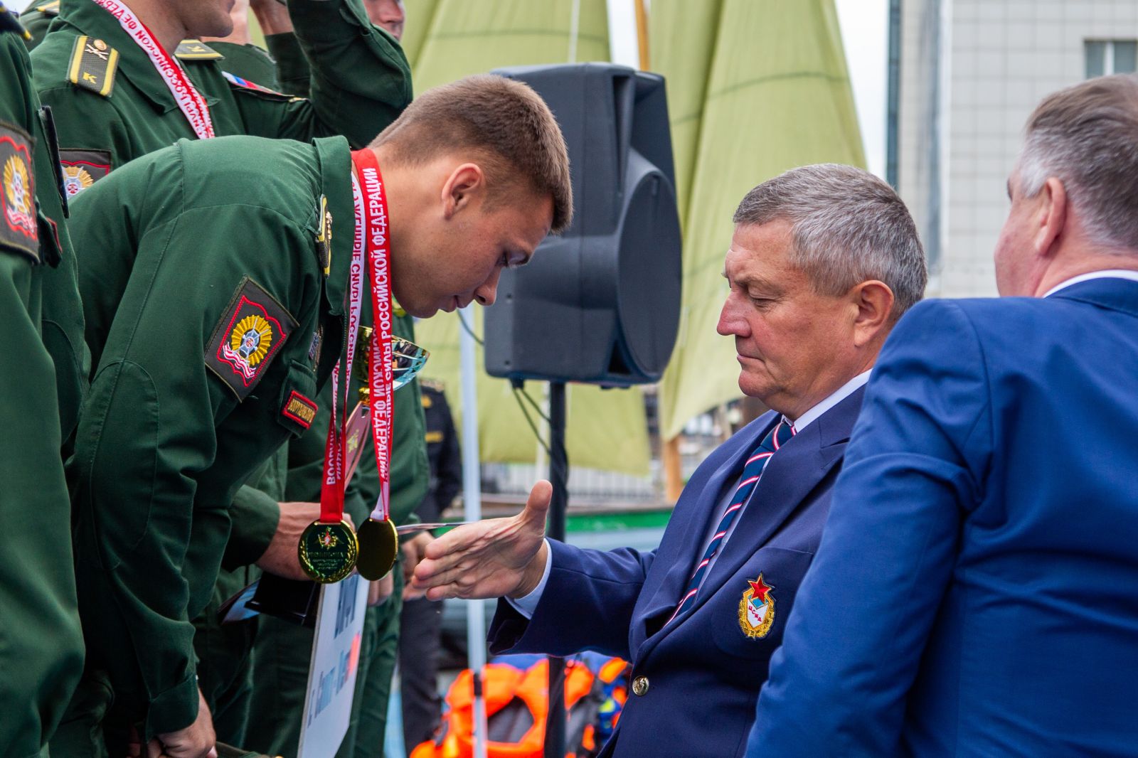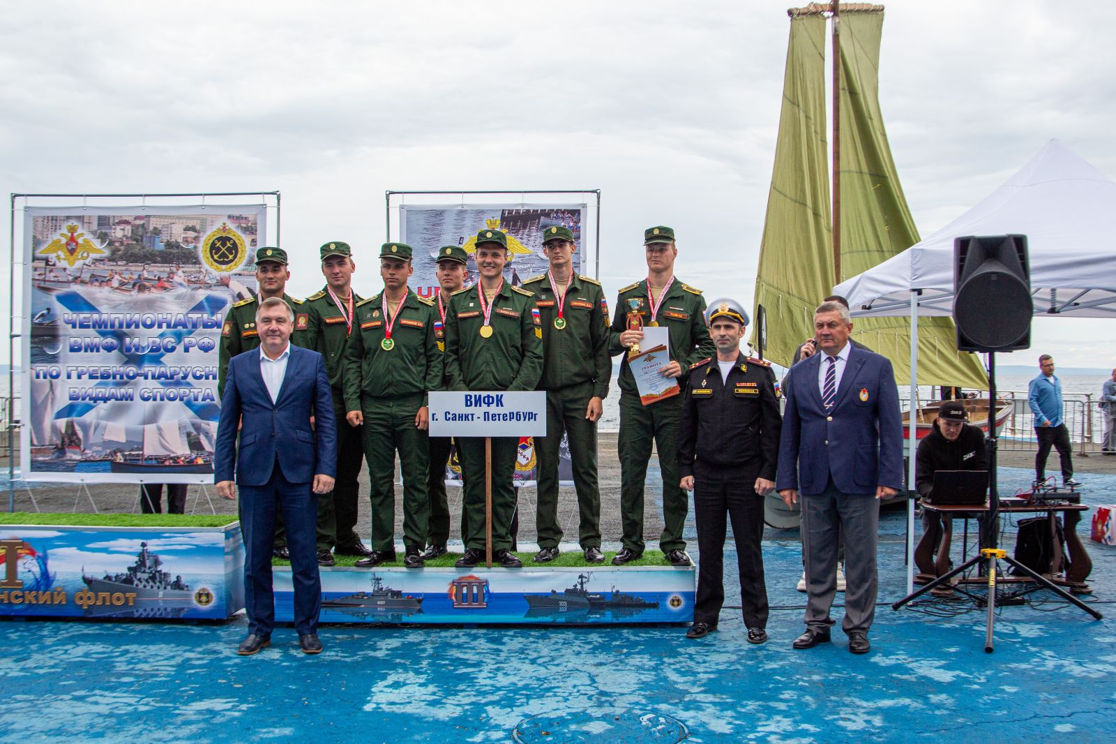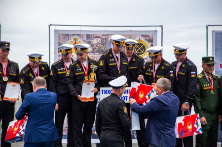 В церемонии награждения принял участие член оргкомитета соревнований начальник Спортивного центра морской и физической подготовки (г. Владивосток) Хабаровского филиала ЦСКА Олег Докучаев.