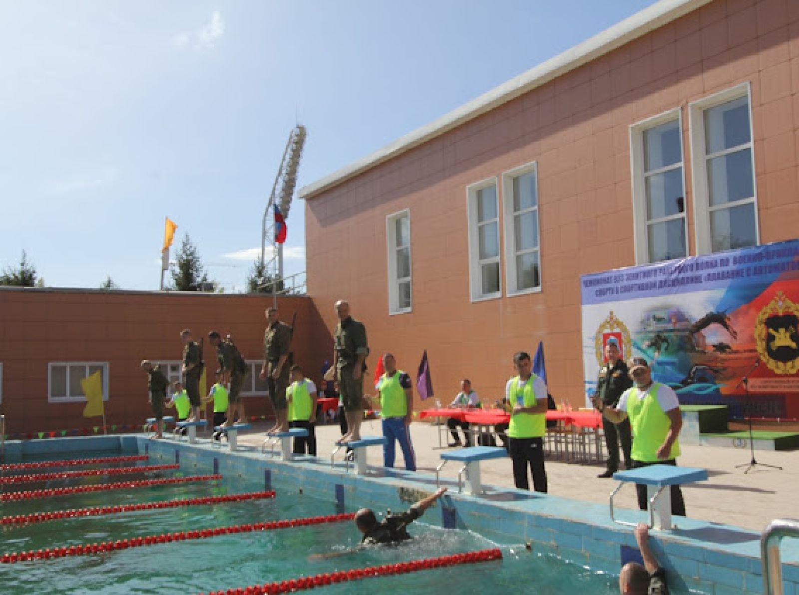 Упражнение «плавание с автоматом» выполняется в военной форме одежды с оружием (АКМ или АКС) или макетом автомата. Макет автомата должен соответствовать размеру и массе не менее 2 кг, обладать отрицательной плавучестью. Судья на финише проверяет у каждого участника заплыва наличие обмундирования, снаряжения и оружия. За каждый потерянный элемент одежды или снаряжения выполненный разряд снижается на одну категорию. В случае потери оружия результат участнику не засчитывается.