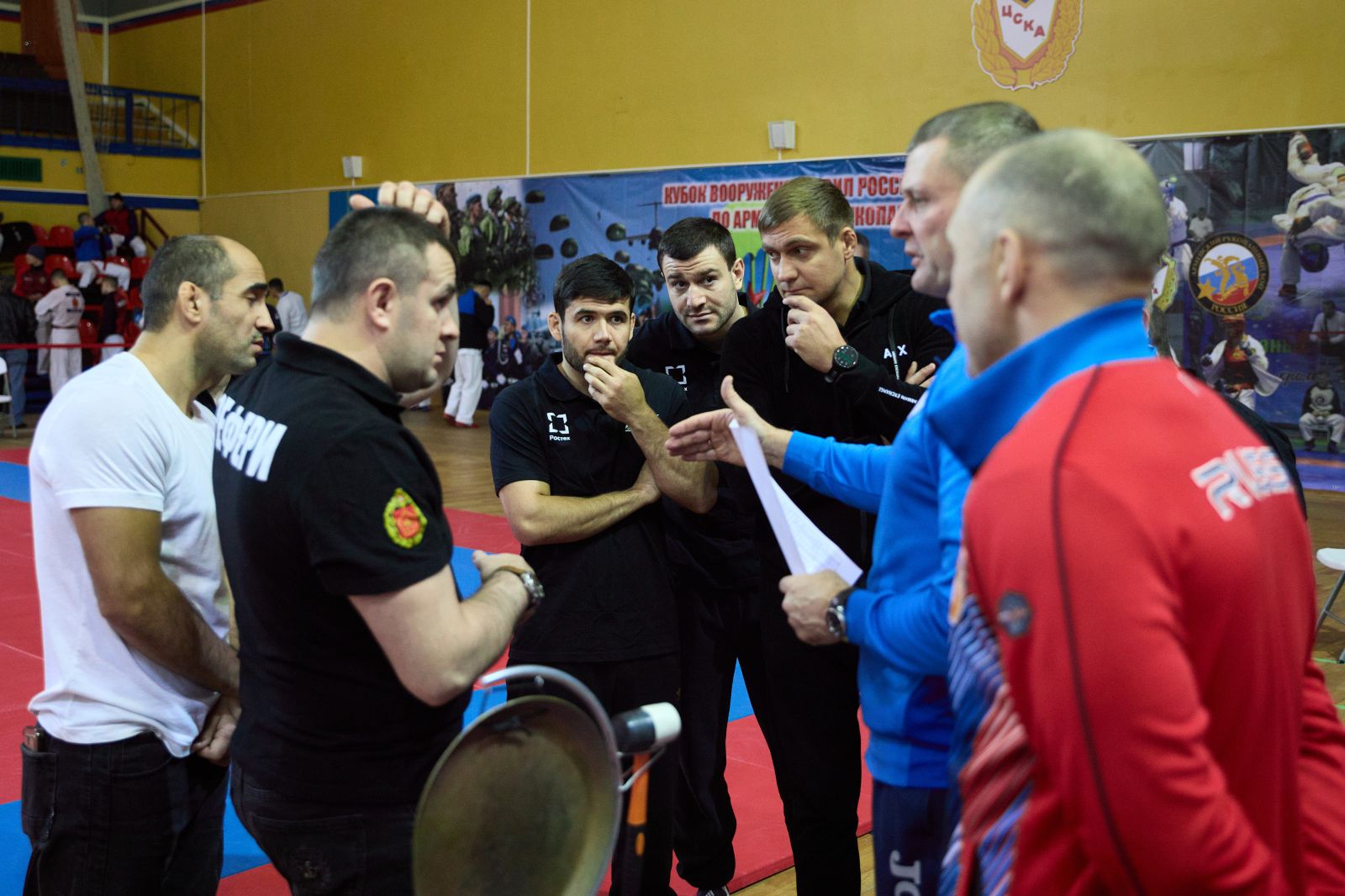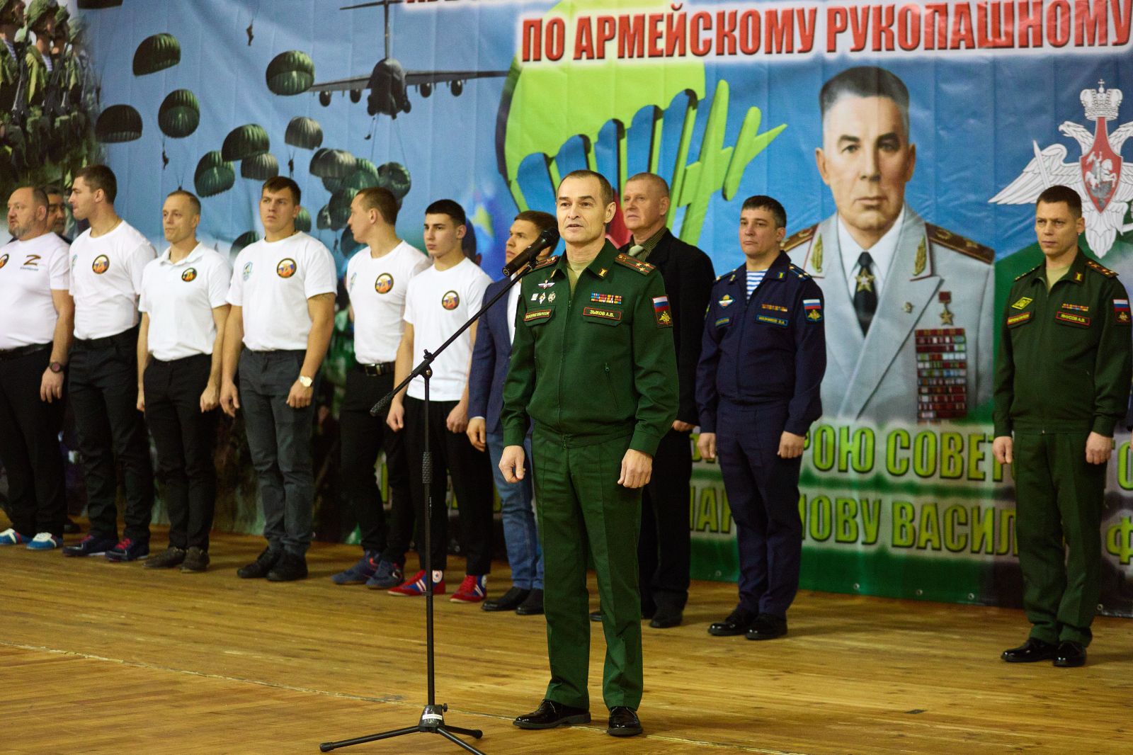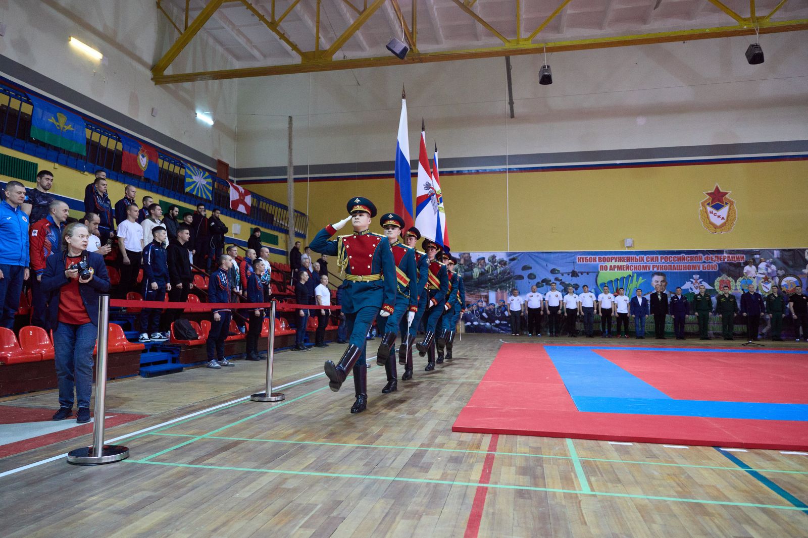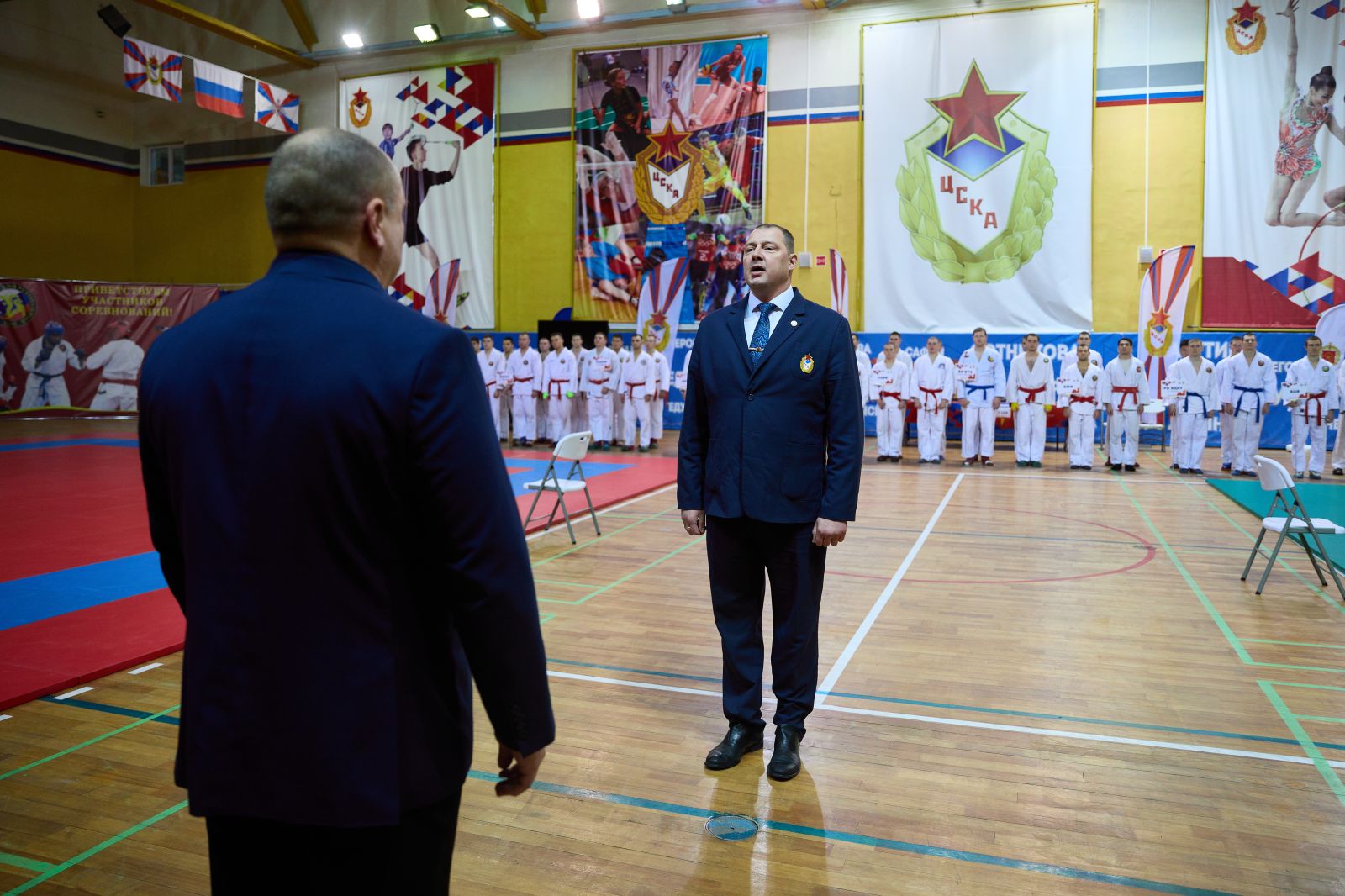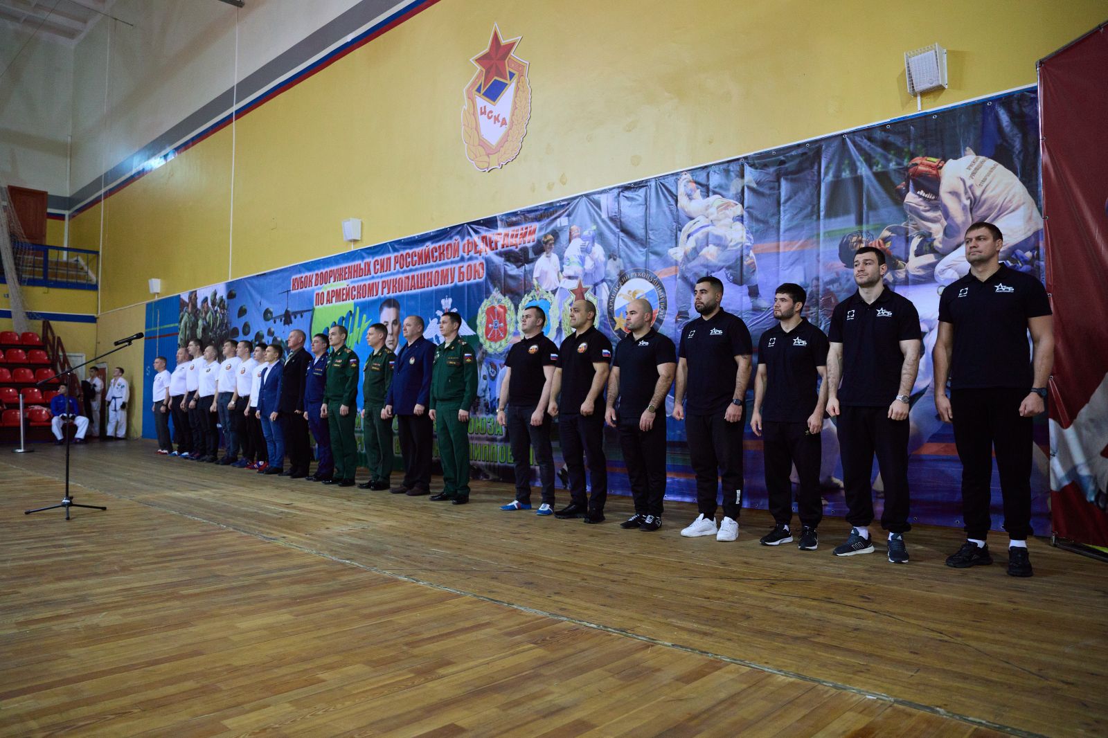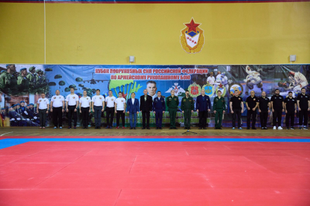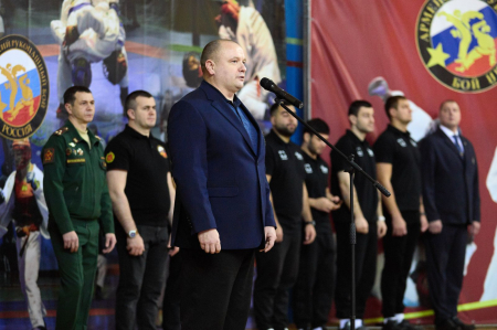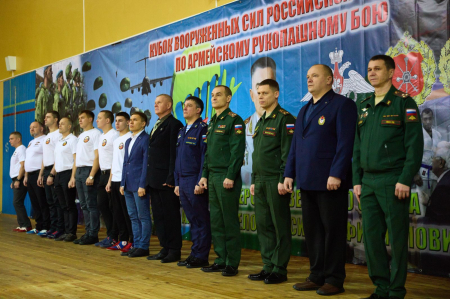 “Поздравляю вас с открытием этого самого престижного и важного спортивного турнира в жизни Вооруженных Сил - финала Кубка по армейскому рукопашному бою. Сегодня в нашем строю стоят спортсмены с очень высокой спортивной квалификацией. Армейский рукопашный бой был создан в 80-е годы прошлого века и приобрел поистине самое большое, важное, военно-прикладное и патриотическое значение. В соревнованиях принимают участие тысячи военнослужащих. Я искренне всем желаю самых высоких результатов, показать всё, на что способны, все свои бойцовские качества”, - поприветствовал участников начальник Управления физической подготовки и спорта Вооруженных Сил Российской Федерации, полковник Андрей Зыков.