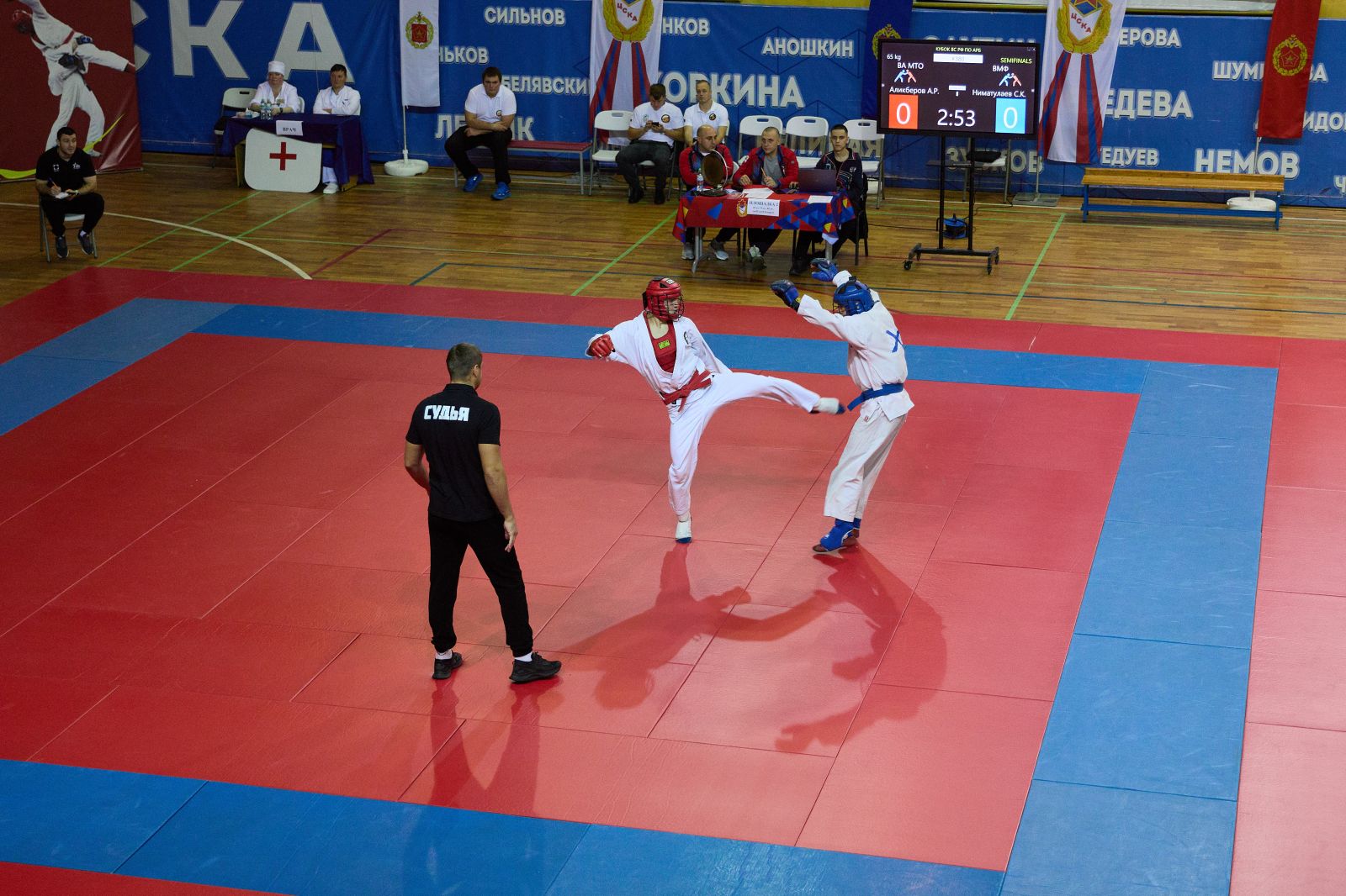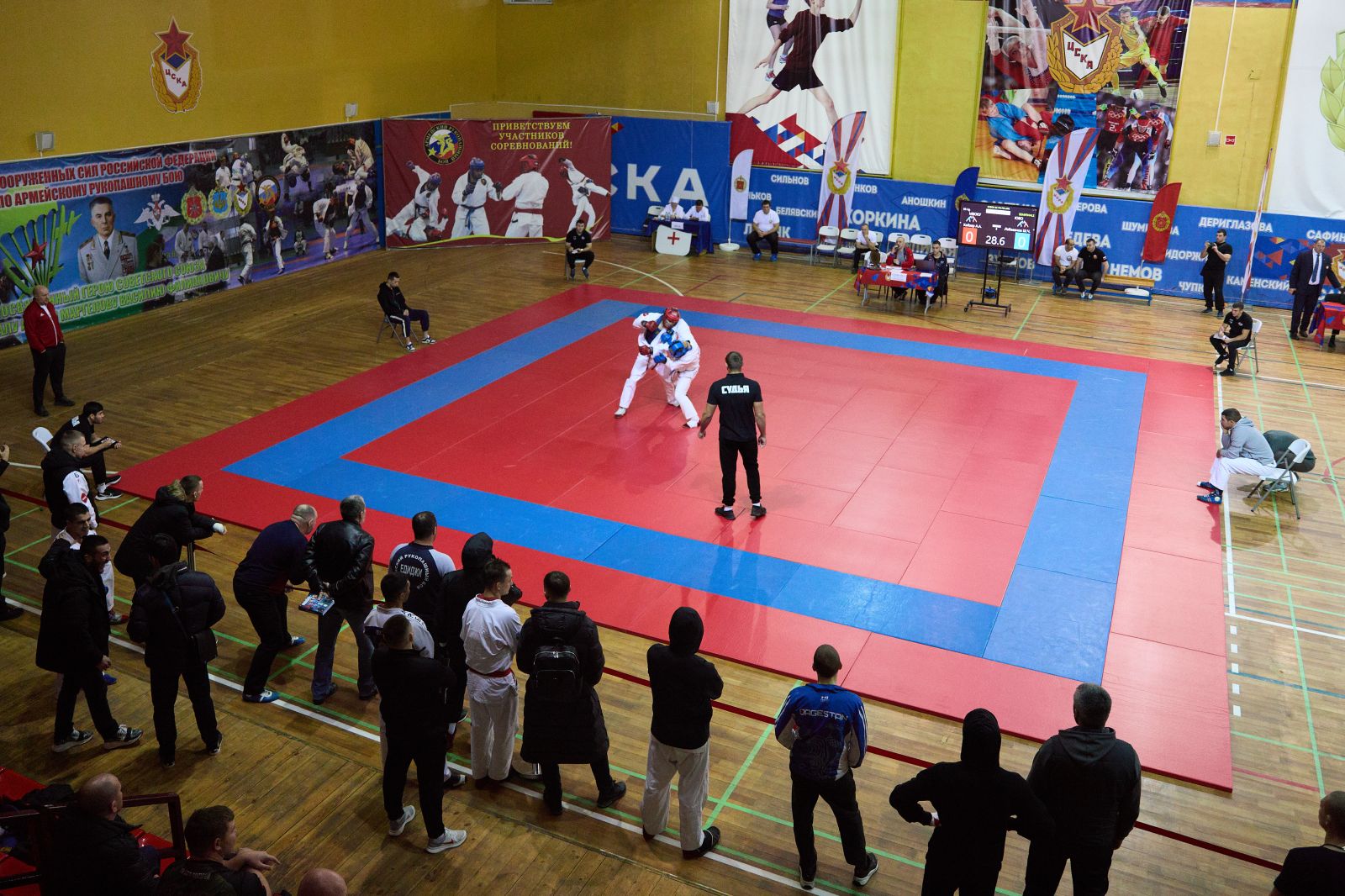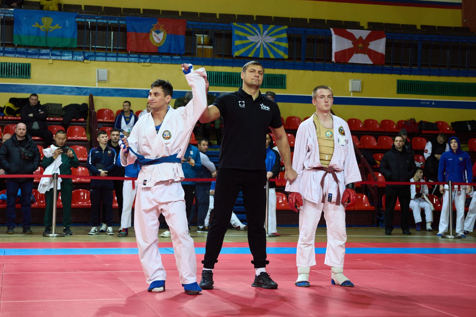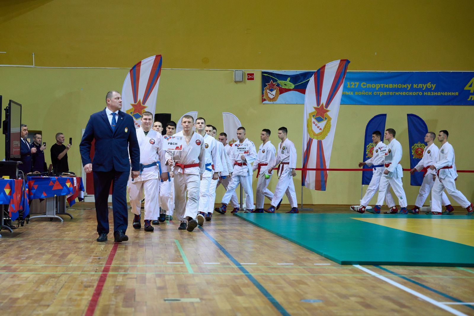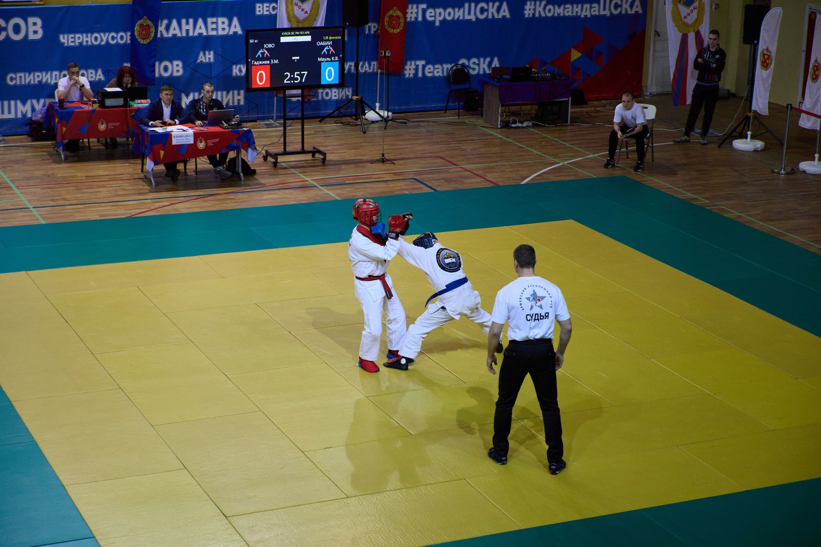 “Поздравляю вас с открытием этого самого престижного и важного спортивного турнира в жизни Вооруженных Сил - финала Кубка по армейскому рукопашному бою. Сегодня в нашем строю стоят спортсмены с очень высокой спортивной квалификацией. Армейский рукопашный бой был создан в 80-е годы прошлого века и приобрел поистине самое большое, важное, военно-прикладное и патриотическое значение. В соревнованиях принимают участие тысячи военнослужащих. Я искренне всем желаю самых высоких результатов, показать всё, на что способны, все свои бойцовские качества”, - поприветствовал участников начальник Управления физической подготовки и спорта Вооруженных Сил Российской Федерации, полковник Андрей Зыков.