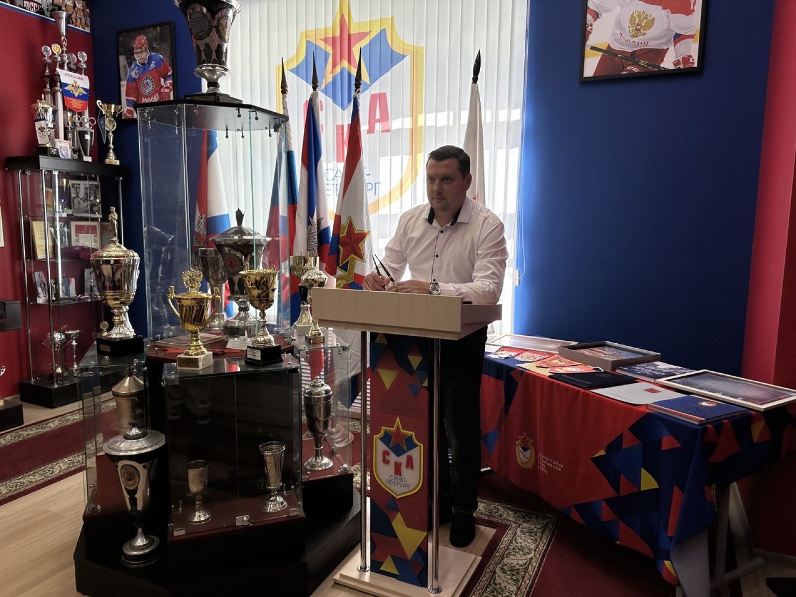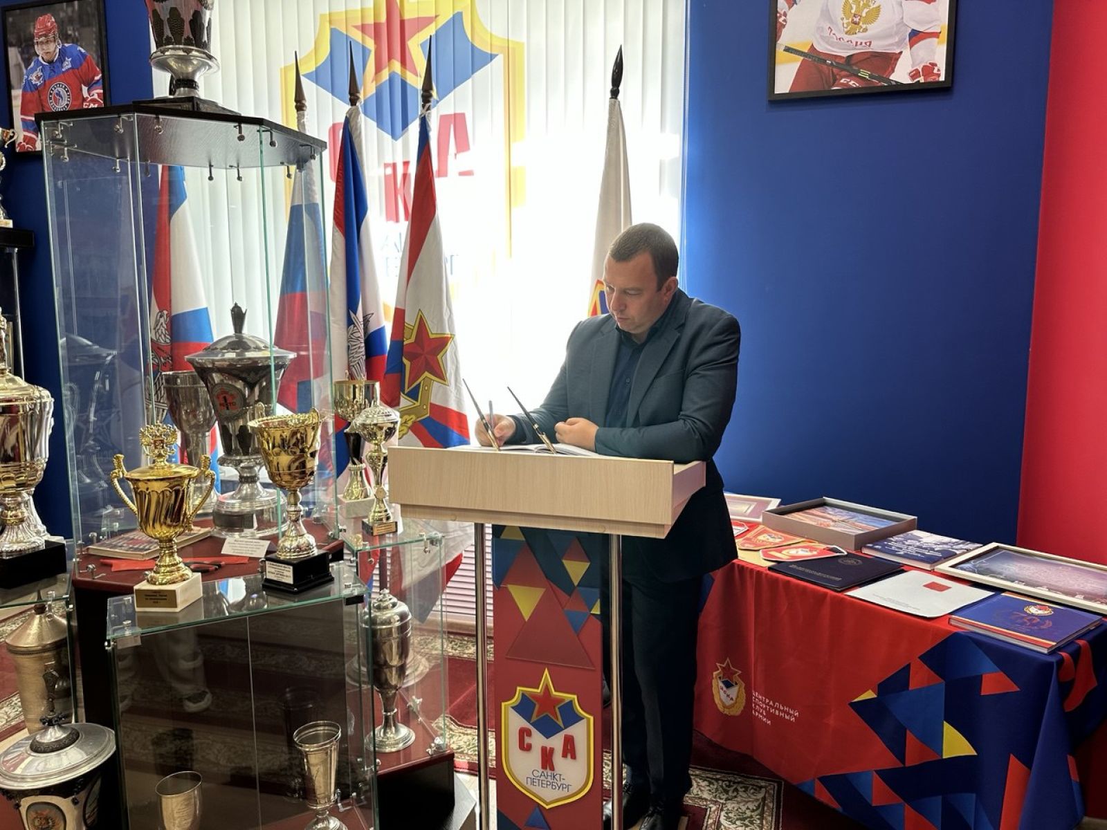 В ходе рабочей встречи гости посетили музей спортивной славы СКА, где для них провели экскурсию и рассказали об истории Клуба, заслуженных тренерах и выдающихся спортсменах, отстаивающих честь своей страны в разные годы. Павел Иткин и Андрей Малков оставили памятные записи в гостевой книге филиала.