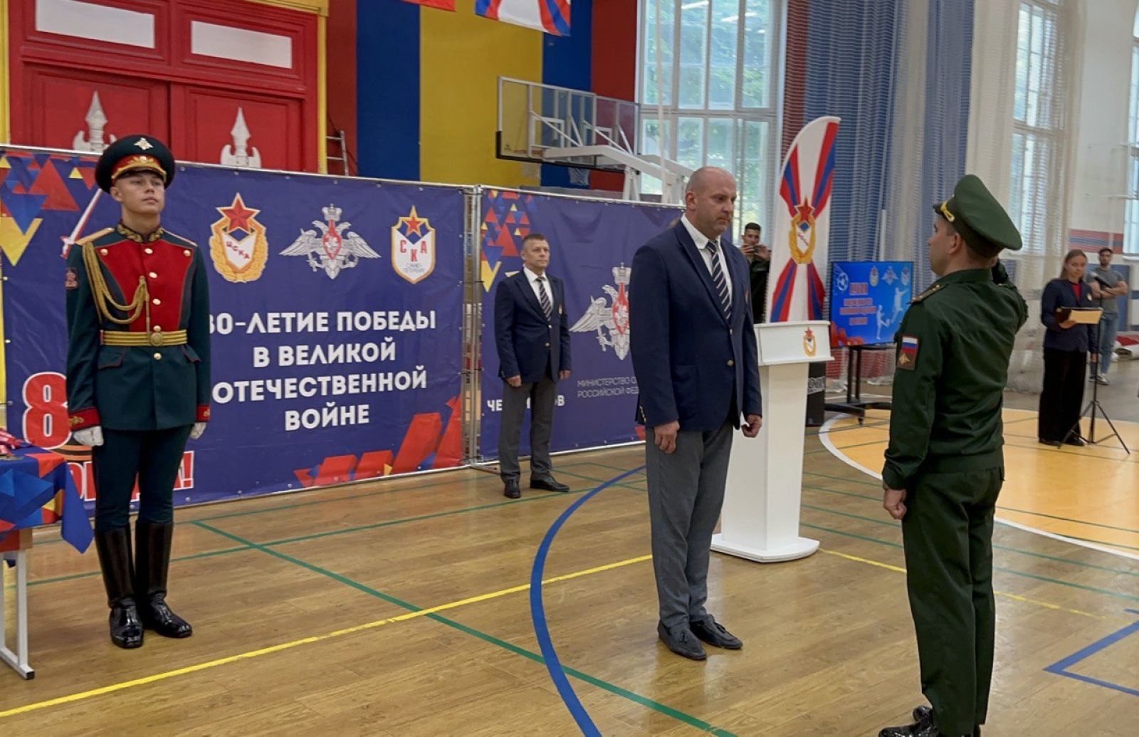 В ряду почётных гостей на торжественной церемонии присутствовали начальник филиала ФАУ МО РФ ЦСКА (СКА, г. Санкт-Петербург) Андрей Харин и заместитель начальника филиала ФАУ МО РФ ЦСКА (СКА, г. Санкт-Петербург) Андрей Шаталов.