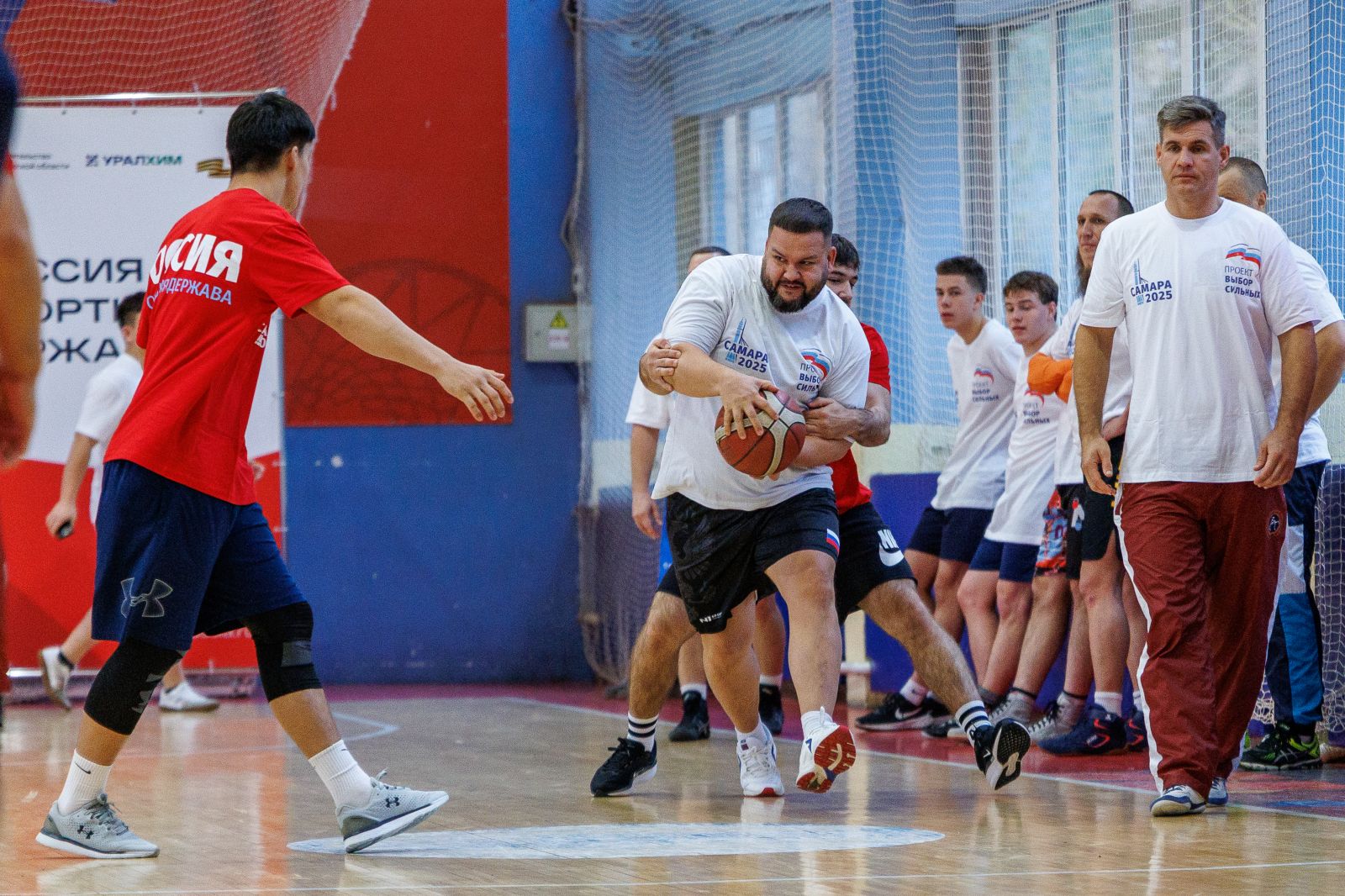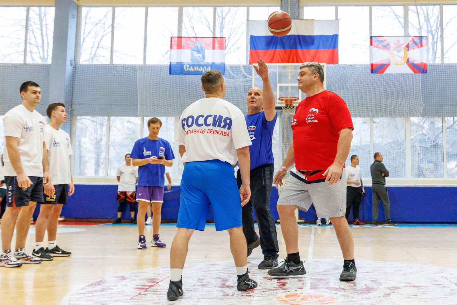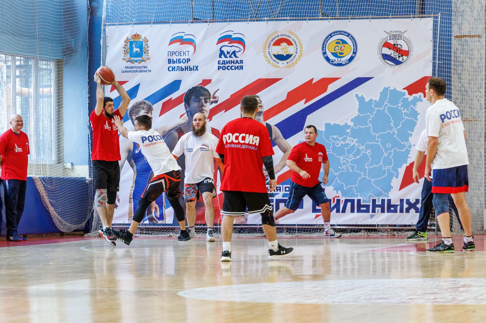 Под руководством и судейством трёхкратногоОлимпийского чемпиона по греко-римской борьбе, девятикратного чемпиона мира, 12-кратного чемпионаЕвропы, Заслуженного мастера спорта СССР, Героя России, Почётного жителя Новосибирска, Сенатора Российской Федерации Александра Карелина и региональногокоординатора проекта «Выбор сильных», президентаСамарской областной федерации спортивной борьбы, депутата Губернской Думы, мастера спорта по спортивной борьбе Александра Живайкина борцы различных видов единоборств провели товарищеский баскетбольный матч. Главный девиз встречи: «На ковре мы соперники, а в жизни – друзья» объединил спортсменов, результат проведённой игры – победила дружба.