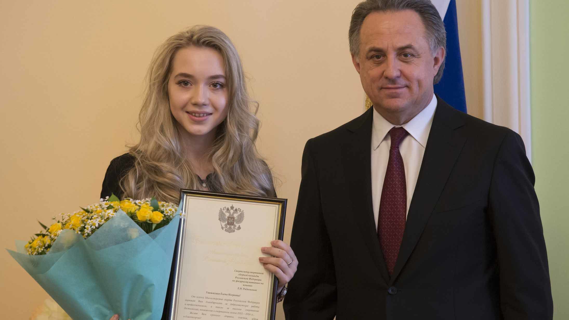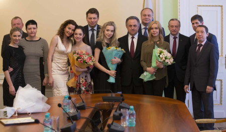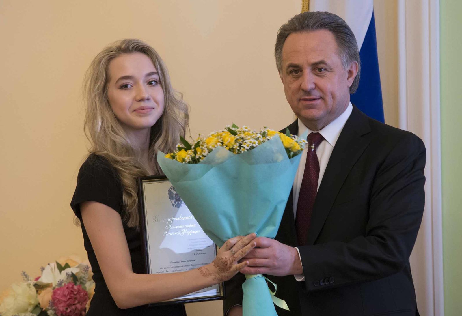 Виталий Мутко вручил спортсменкам и тренерам ведомственные награды. Елена Радионова и Инна Гончаренко были отмечены благодарственными письмами.