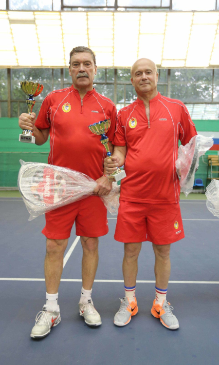 Соревнования прошли в парном разряде (5 команд) по круговой системе. Все игры состояли из одного сета. Победителями турнира с четырьмя выигранными матчами в активе стали полковники в отставке, чемпион России среди ветеранов Андрей Маликов и старший тренер-начальник спортивной команды ЦСКА по теннису Алексей Жук (6-0, 6-0, 6-3 и 6-0). Второе место с тремя победами заняли приглашенные гости из подмосковной Балашихи, ветераны армейского спорта, многократные победители чемпионатов России по теннису среди ветеранов Юрий Шаманин и Франс Нуникян (6-1, 6-2, 3-6 и 6-0). Бронзовые медали турнира выиграли начальник ЦСКА с 1994 по 1998 годы, полковник запаса Александр Барановский и подполковник запаса Александр Петров, которые победили в двух матчах (1-6, 0-6, 6-2 и 6-3).