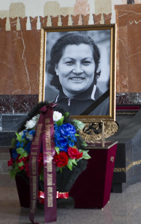 Проститься с выдающейся спортсменкой пришли ее родные, друзья, коллеги и ученики, а также другие прославленные олимпийские чемпионы и воспитанники СДЮШОР ЦСКА по легкой атлетике. Среди почетных гостей на траурном митинге присутствовали: статс-секретарь – заместитель Министра обороны Российской Федерации генерал армии Николай Панков; начальник Центрального спортивного клуба Армии полковник Михаил Барышев; начальник Главного управления по обеспечению участия в Олимпийских играх Олимпийского комитета России Игорь Казиков; первый заместитель начальника ЦСКА, двукратная олимпийская чемпионка по спортивной гимнастике подполковник Светлана Хоркина; заместитель начальника ЦСКА по работе с личным составом, двукратная олимпийская чемпионка по биатлону подполковник Светлана Ишмуратова; олимпийские чемпионки по легкой атлетике капитан Анна Чичерова и Елена Слесаренко.