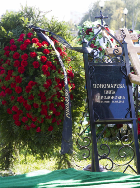 Захоронение Нины Пономаревой прошло по Указанию Президента Российской Федерации № ПР-1844 от 23.09.2016 года. В соответствии с постановлением Правительства России от 25 февраля 2004 года на первом национальном мемориальном пантеоне подлежат погребению герои России, военнослужащие и сотрудники федеральных органов исполнительной власти, погибшие или совершившие подвиг, защищая Отечество, а также другие граждане, внесшие особый вклад в развитие нашей страны или имеющие заслуги перед государством. Нина Апполоновна Пономарева стала первой спортсменкой в истории России, удостоенной чести быть похороненной на Федеральном военном мемориальном кладбище.