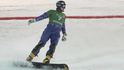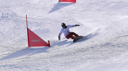 Два сноубордиста стартуют на одинаковых параллельных трассах с большим количеством резких поворотов и стараются опередить друга. Одна из трасс обозначается красными флажками, другая - синими. Длина дистанции до 1000м.