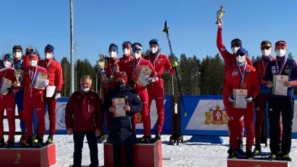 В программу первенства СССР этот вид лыжного спорта вошел в 1935 г. Первым победителем в прыжках с трамплина и лыжной гонке на 18 км стал москвич Н. Алферов.